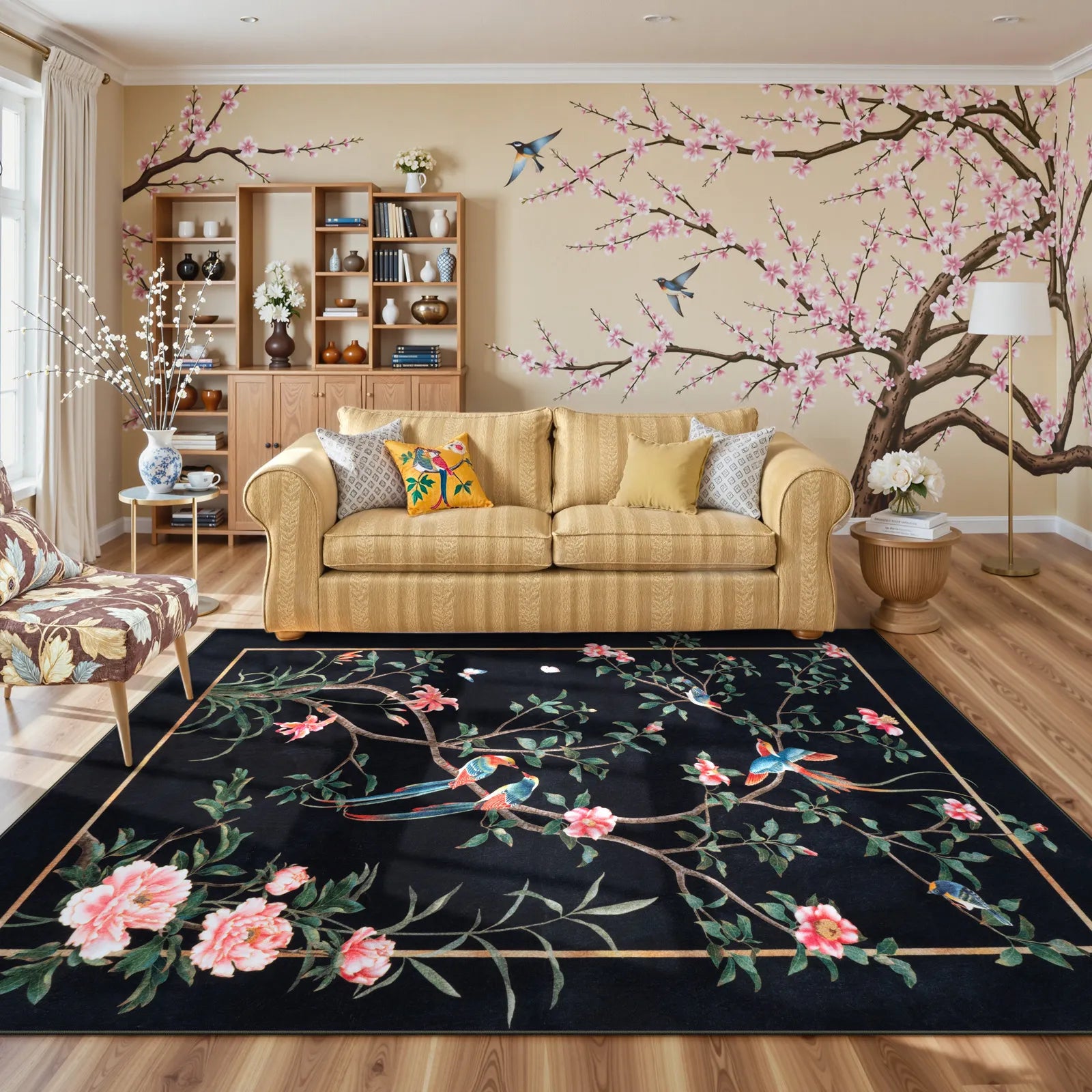 runner, floral, outdoor rug, pink rug, insect, butterfly, 8x10 rug, living room rug...