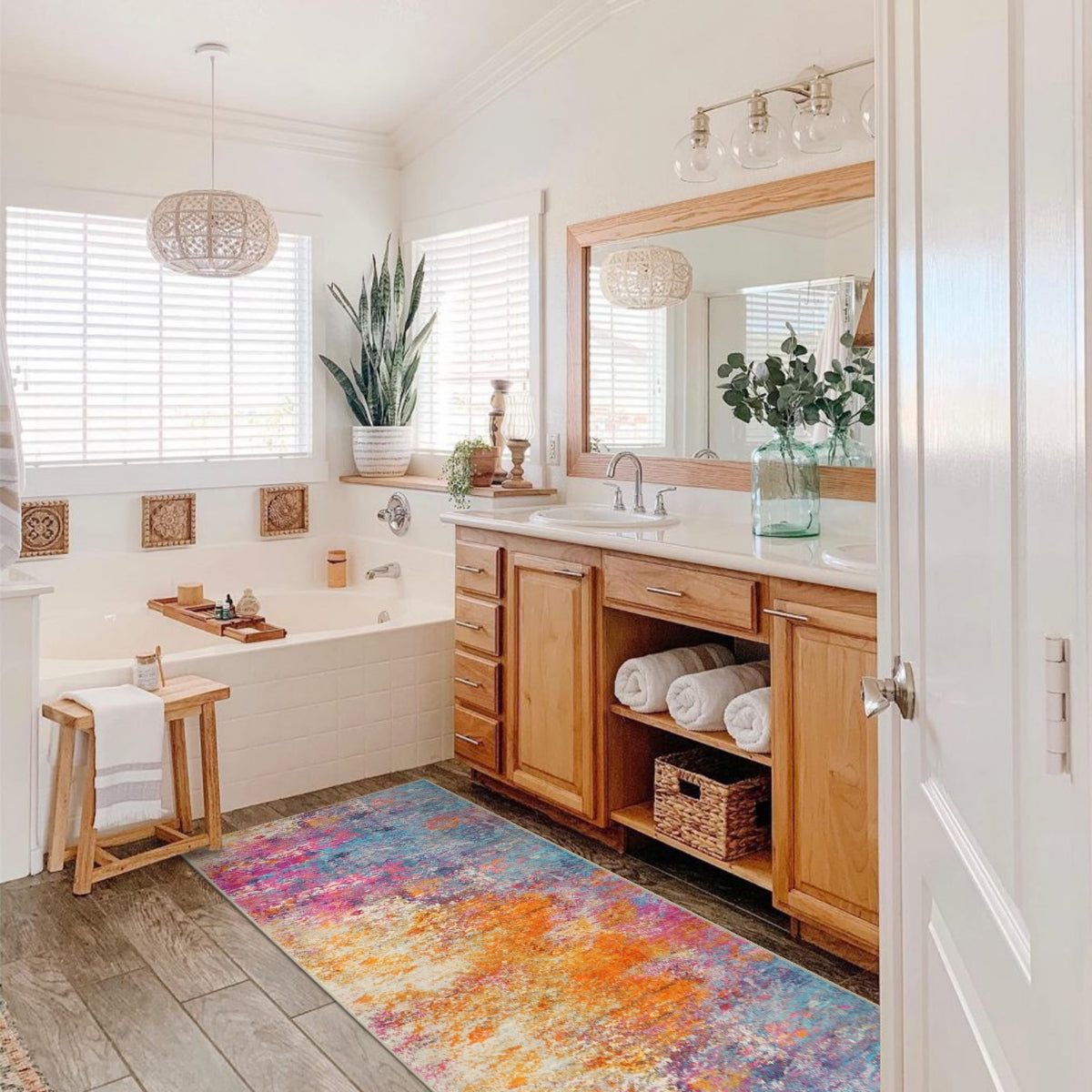 - Opt for washable or stain resistant rugs if you have pets or kids