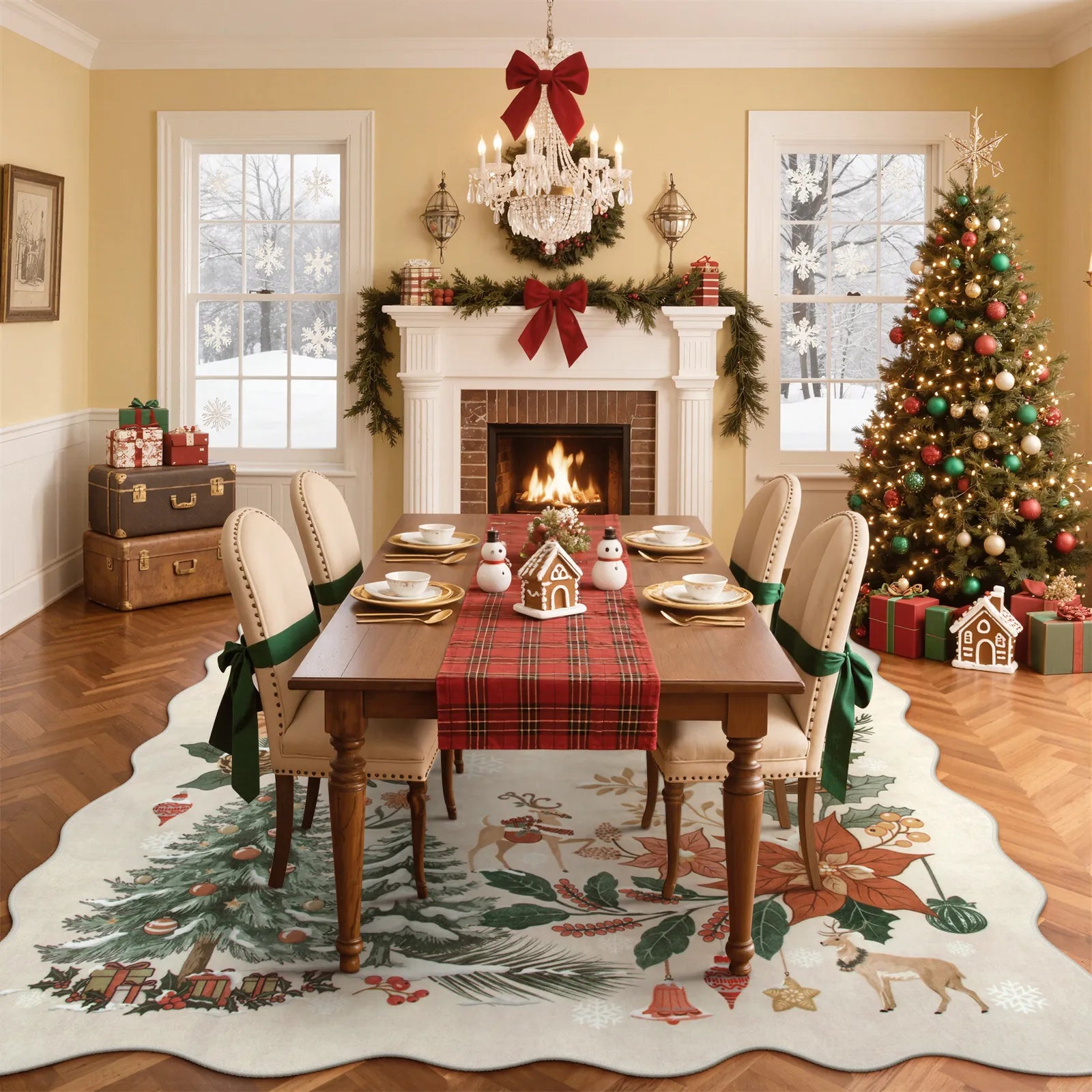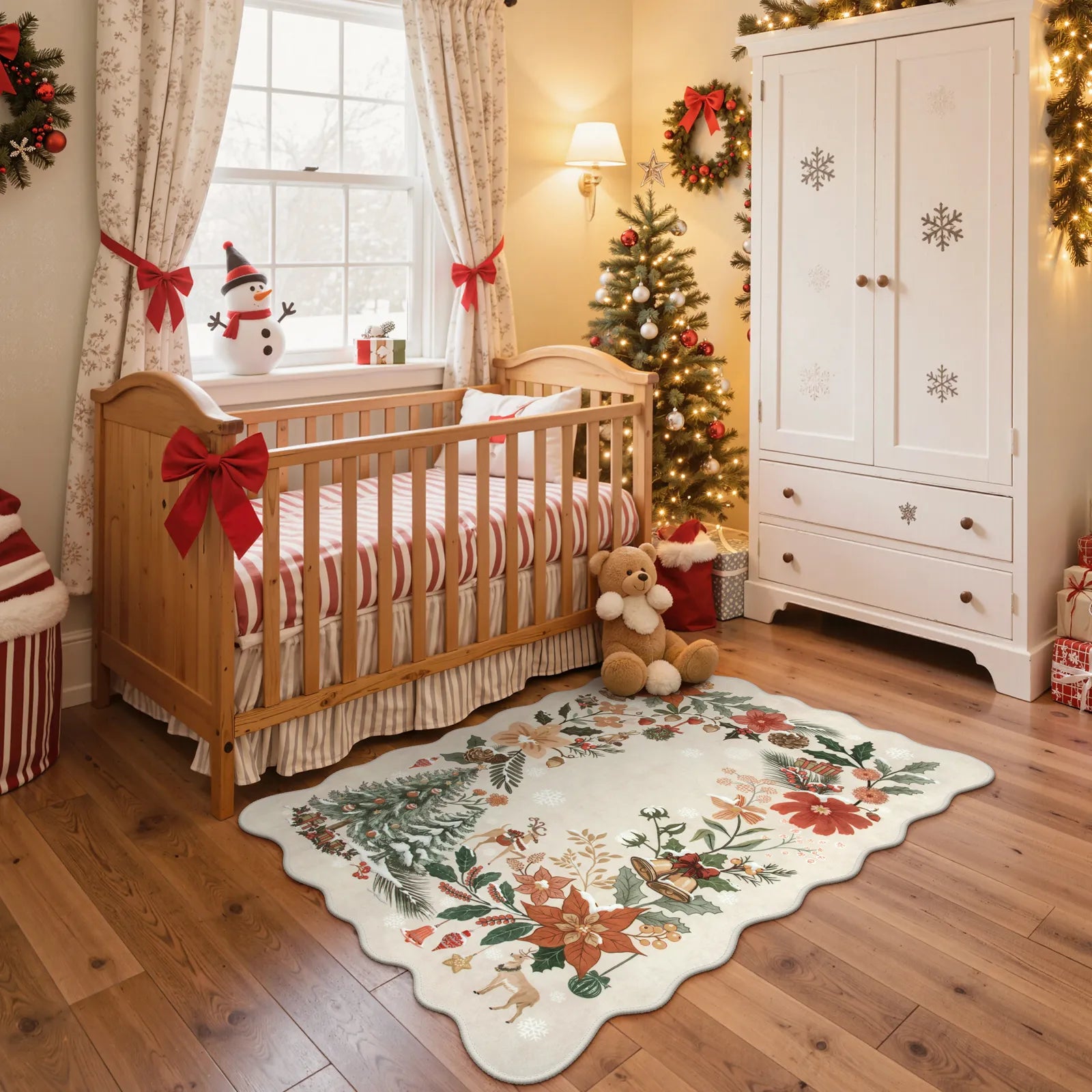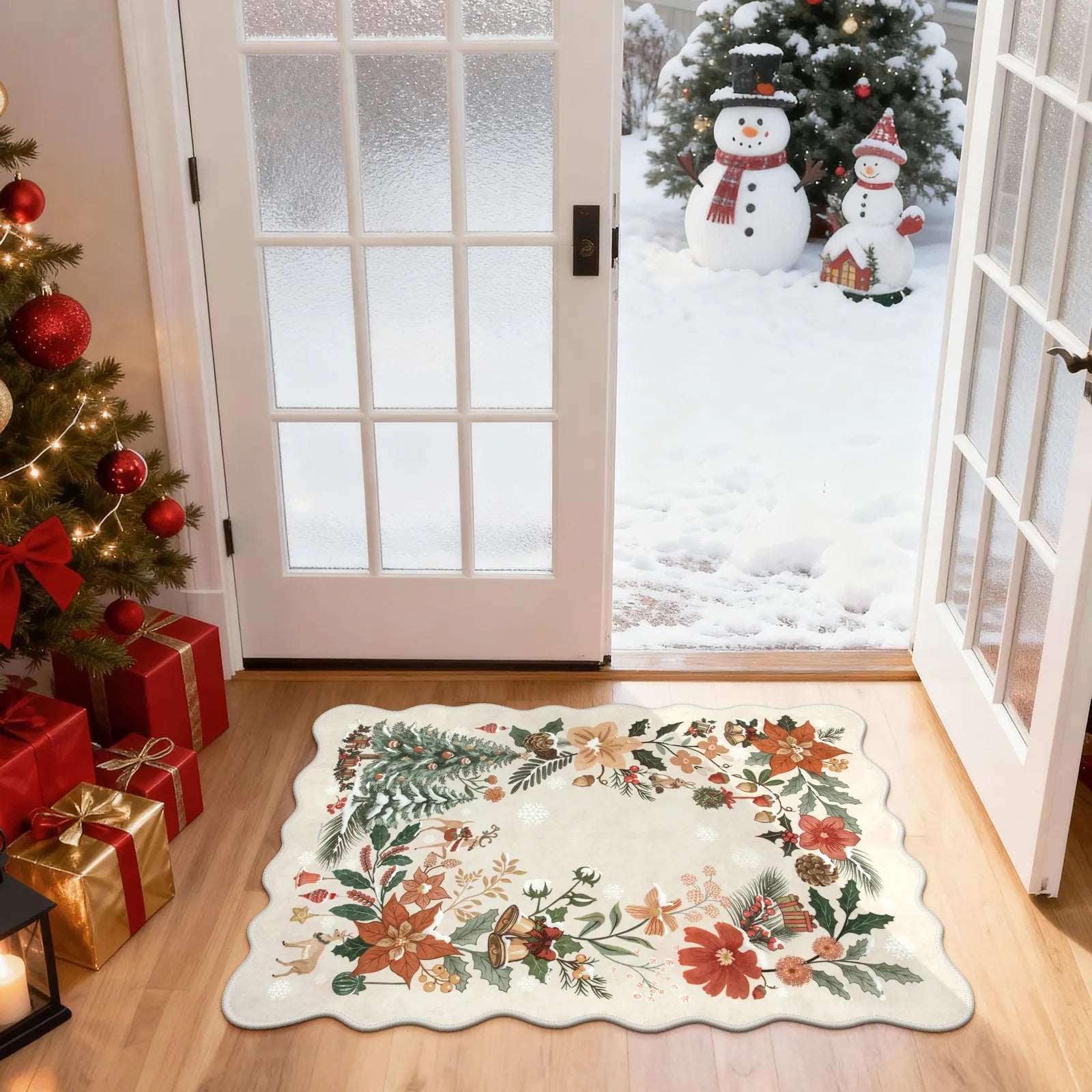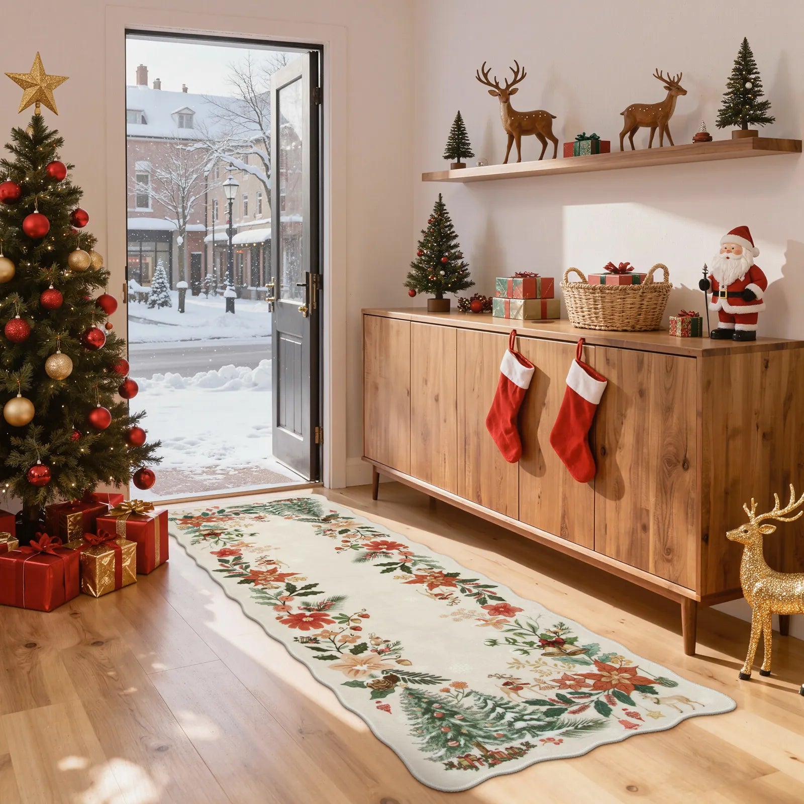 Nicolas Christmas Washable Floral Bell Beige Rug