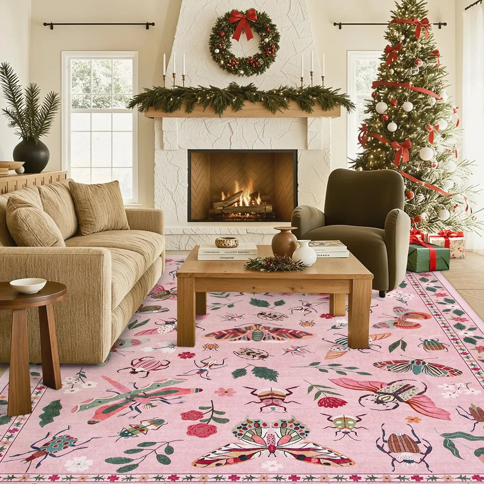 runner, floral, outdoor rug, pink rug, insect, butterfly, 8x10 rug, living room rug...