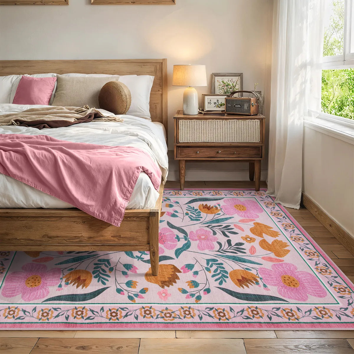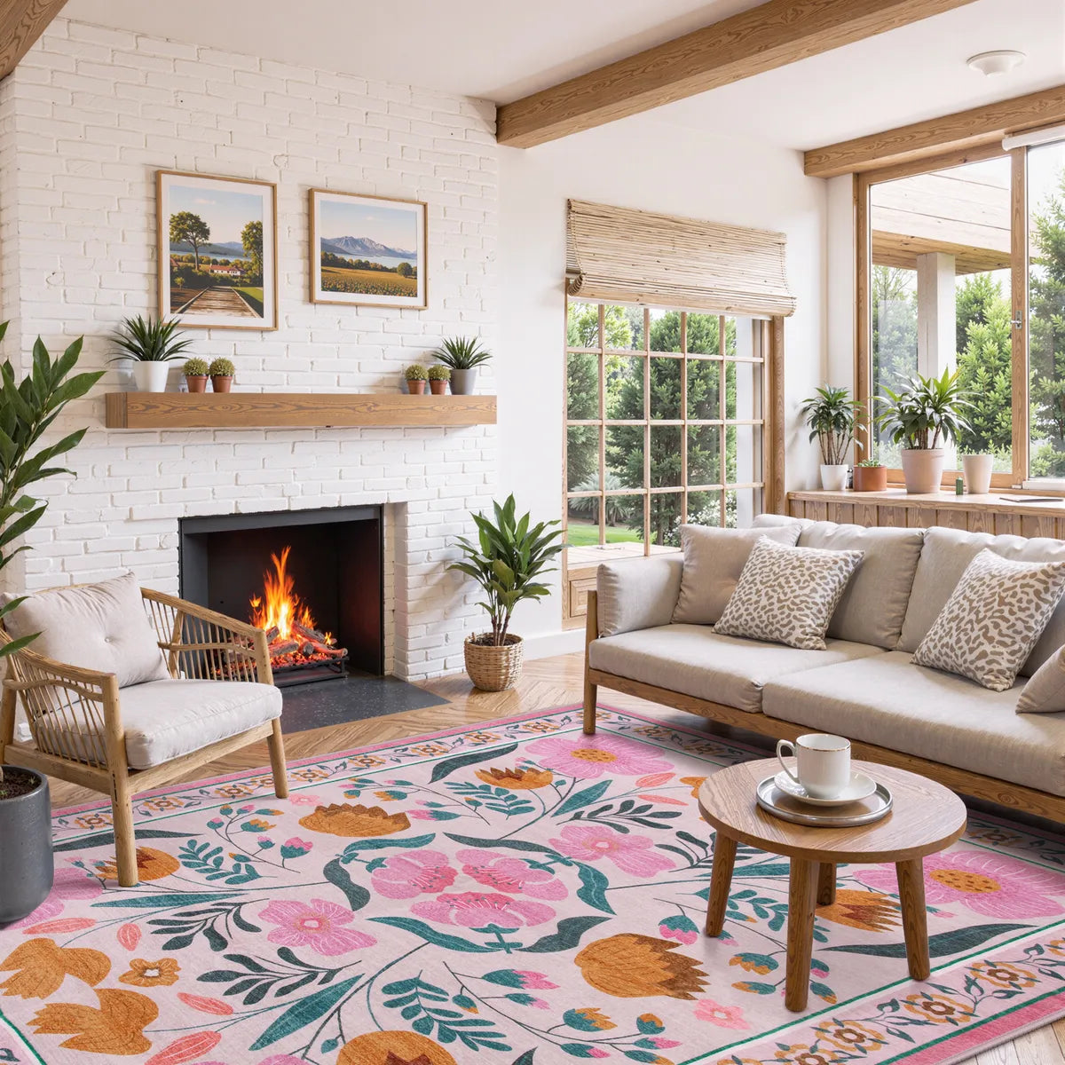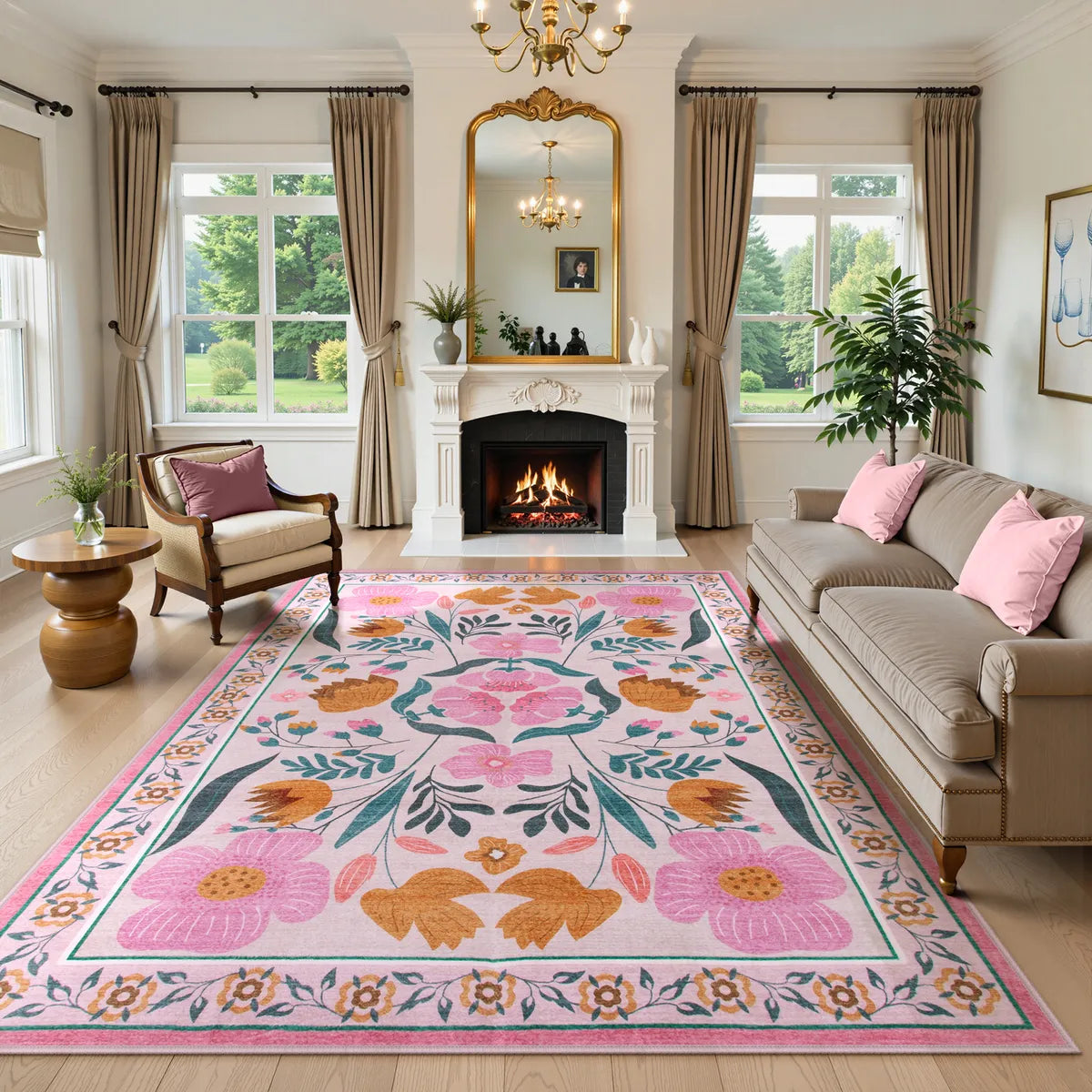 Pink washable rugs are versatile and can add a touch of charm and warmth to a variety of spaces. In the living room, a soft pink rug can create a cozy, welcoming atmosphere while complementing neutral or light-colored furniture, making it perfect for enhancing a serene, inviting environment. For bedrooms, especially those with pastel, white, or neutral tones, a pink rug creates a soothing, relaxing vibe, turning the room into a peaceful retreat.