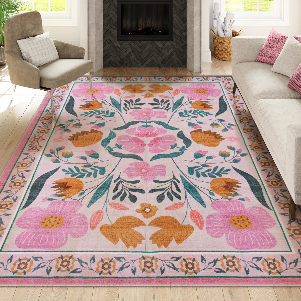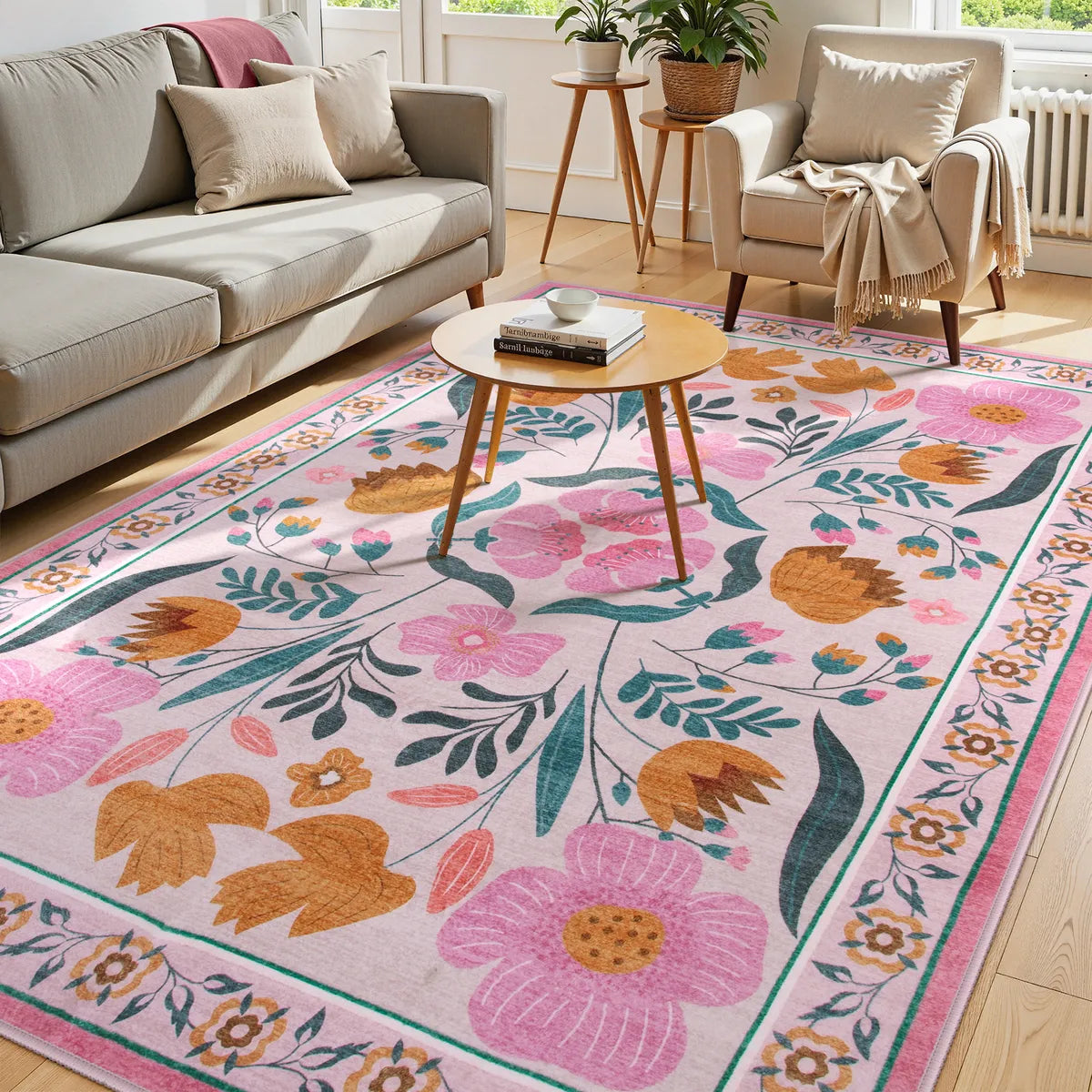 Elegant Pink Washable Rugs – Soft, Stylish & Easy to Clean