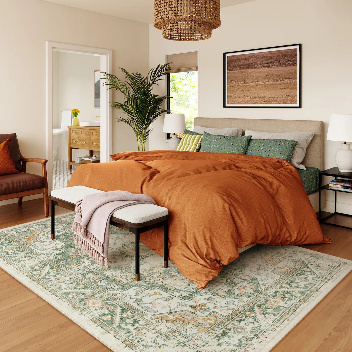 Yes—our rugs are made with safety and sustainability in mind. Lahome rugs are crafted using OEKO-TEX® certified materials, meaning they’re tested to be free from harmful substances and safe for homes with kids and pets.