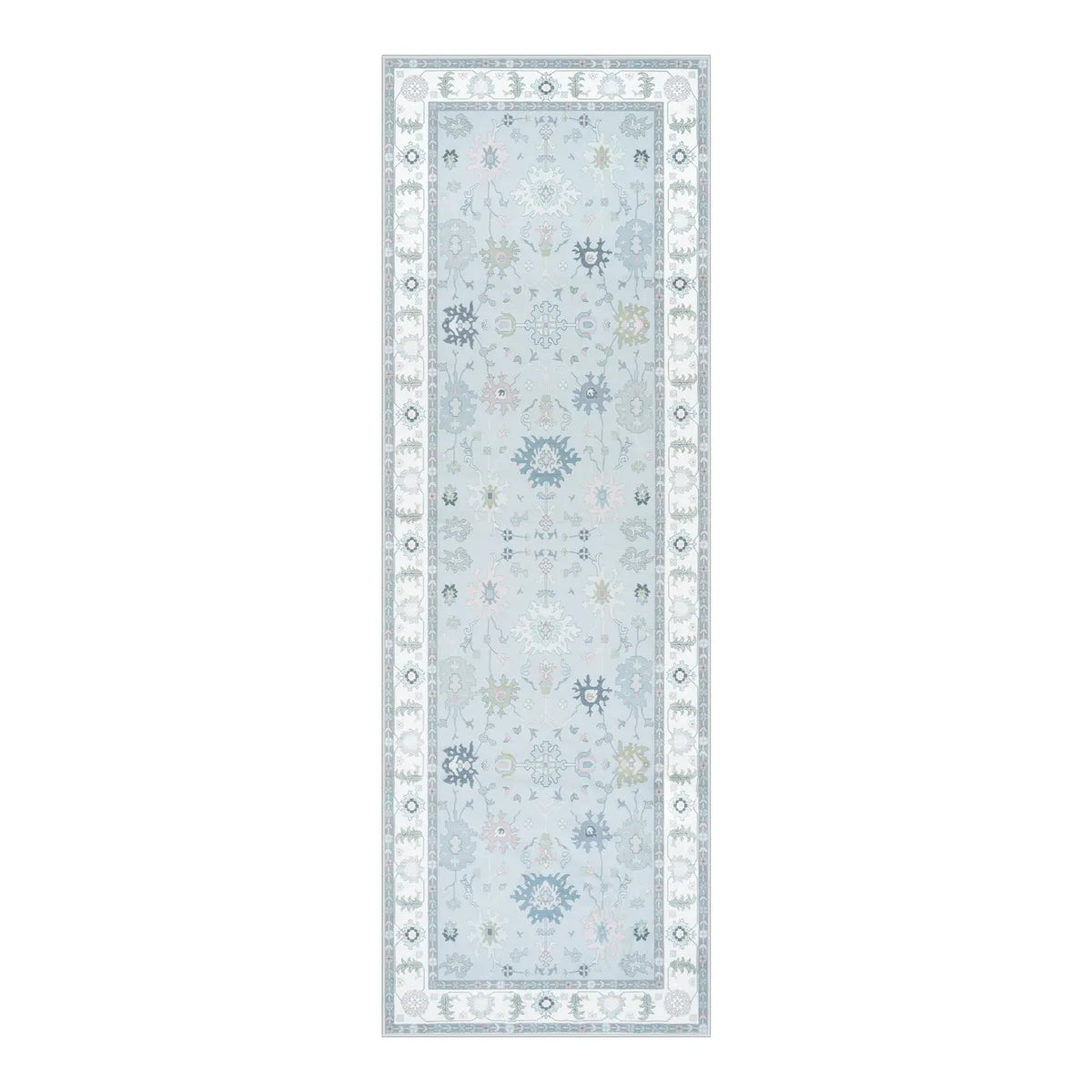 Cachet Washable Boho Oushak Floral Light Blue Rug