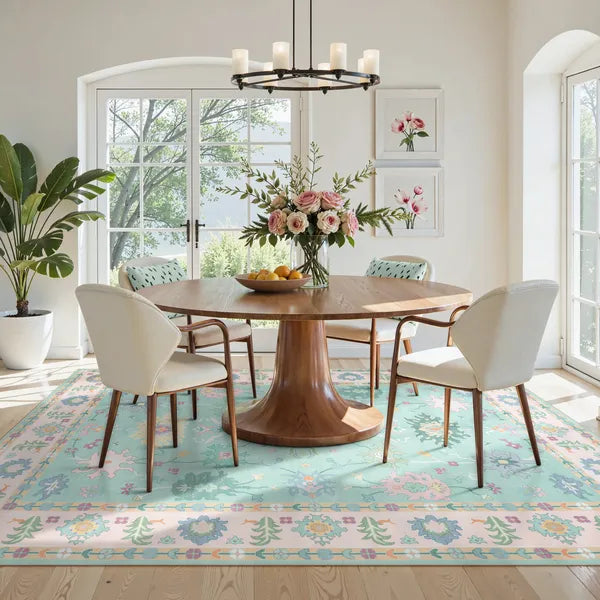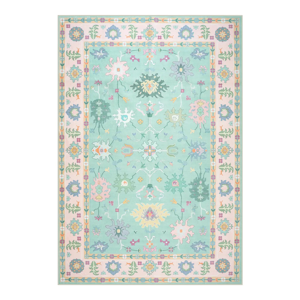 Cachet Washable Boho Oushak Floral Pink/Green Rug
