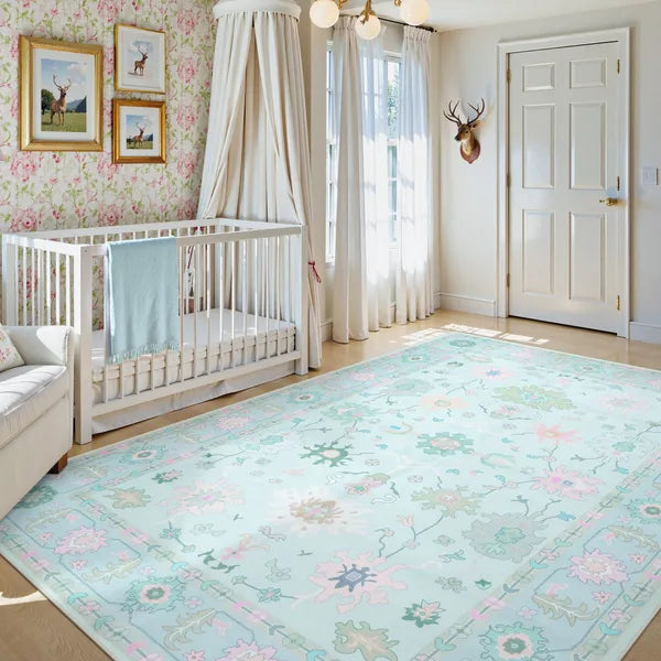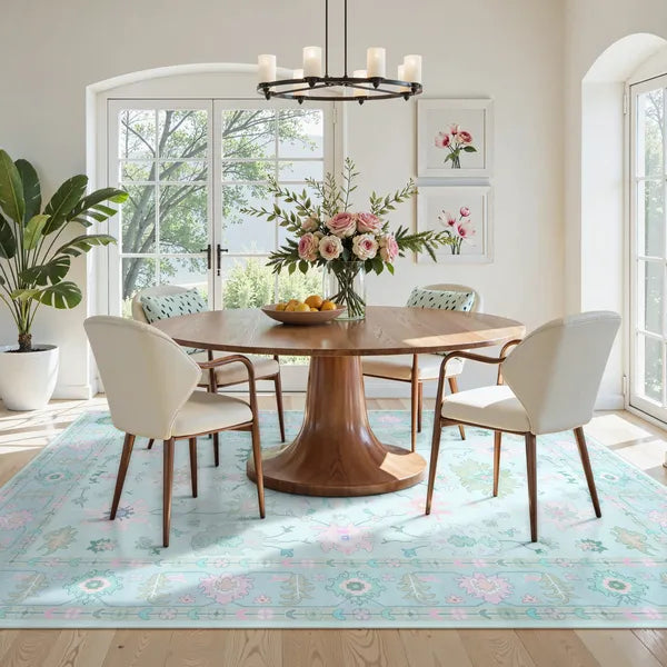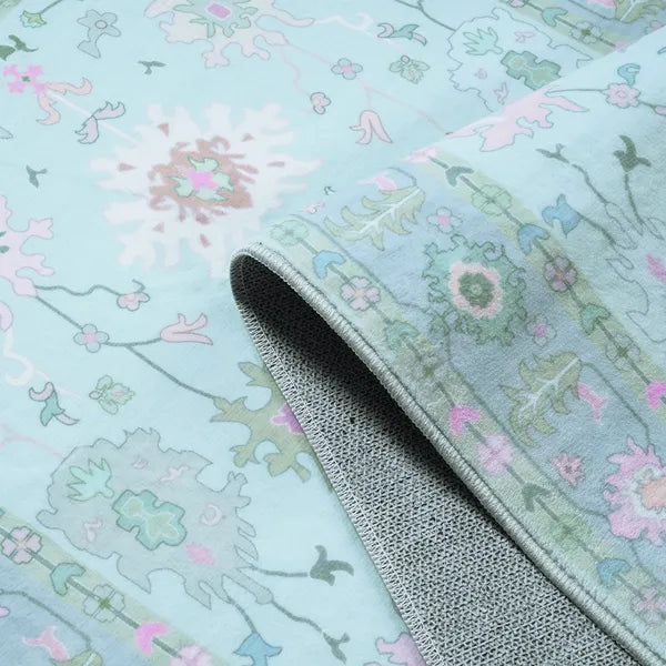 Cachet Washable Boho Oushak Floral Teal Rug