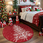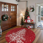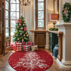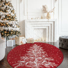 Velours Christmas Washable Tree and Snowflake Red Rug
