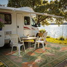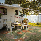 Made from breathable mesh fabric, the rug is waterproof, versatile, lightweigh,making it ideal for patios, balconies, porch, or RV. Lightweight yet durable, it’s easy to clean, quick-drying, and designed for everyday outdoor living.