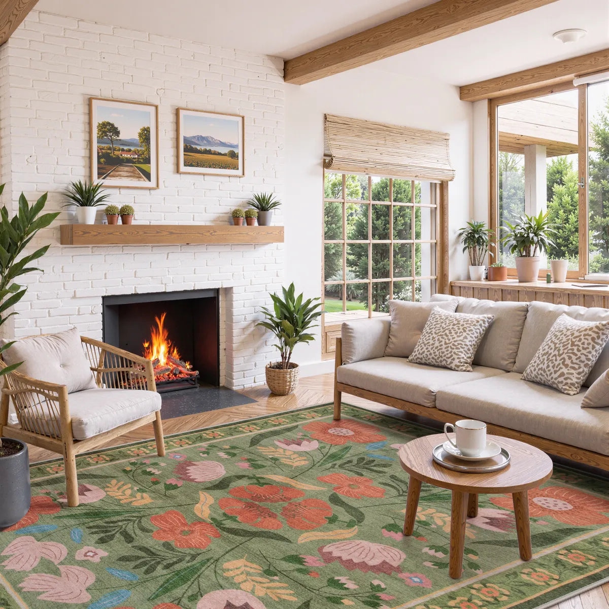 Inspired by storybook gardens and classic folk florals, this fairy garden mesh outdoor rug brings soft charm and gentle symmetry to your space. Hand-drawn flowers unfold across a balanced layout, blending warm earthy tones with a calm, pastoral rhythm.