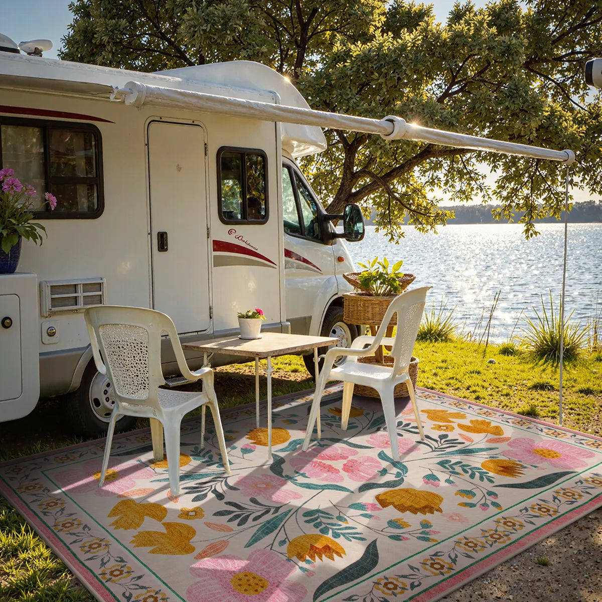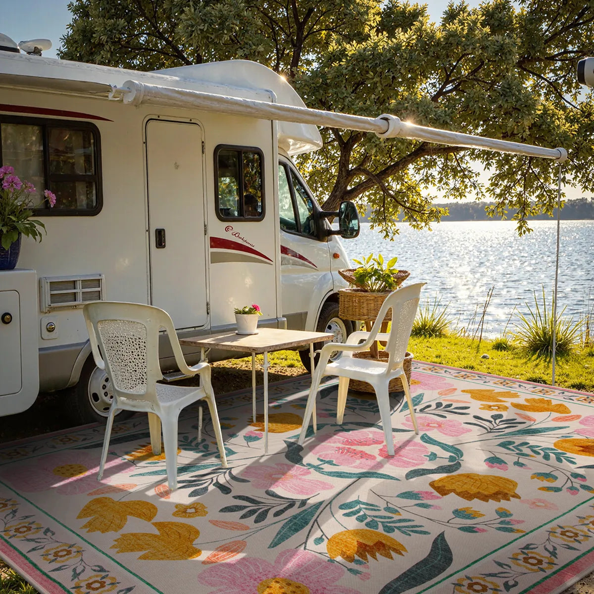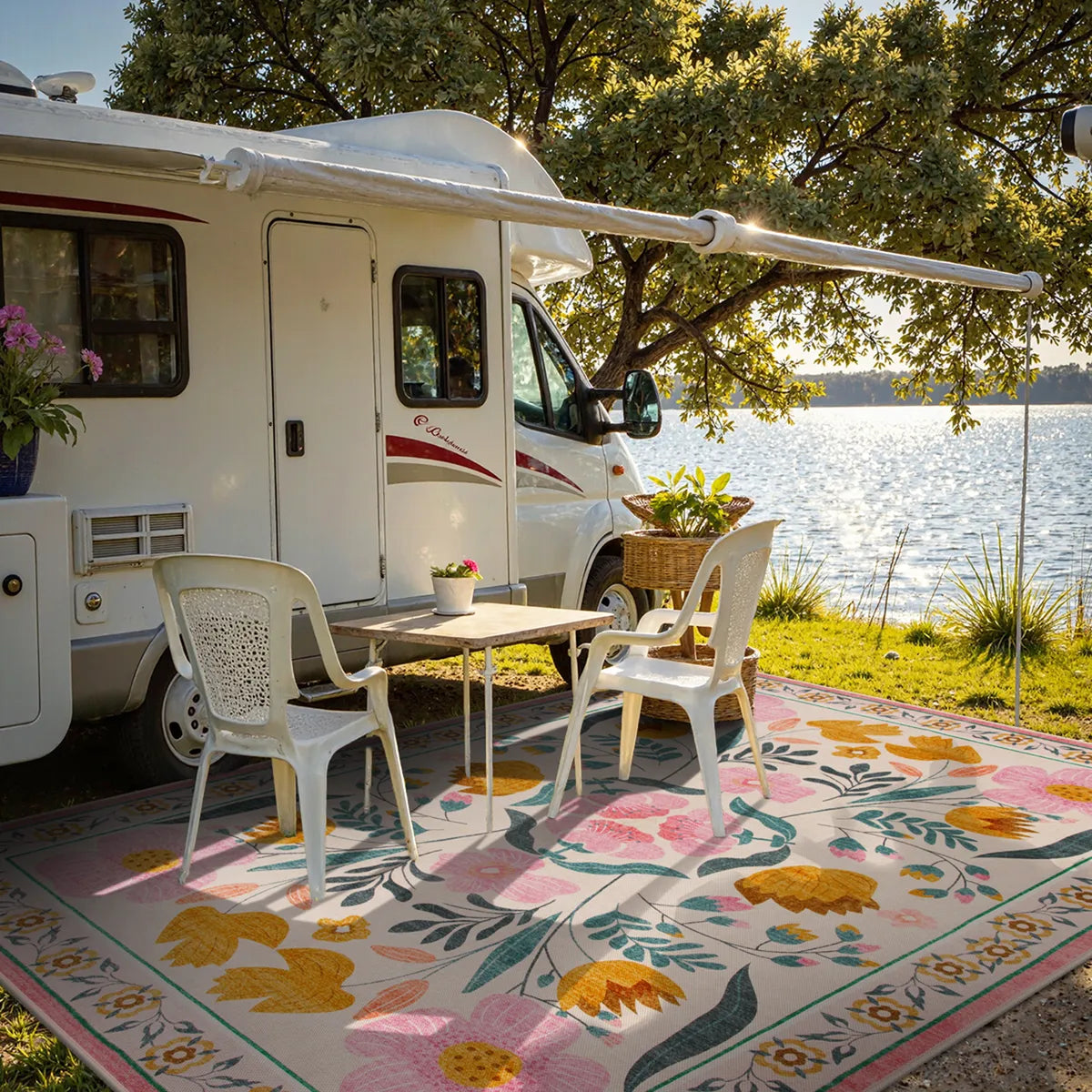 Made from breathable mesh fabric, the rug is waterproof, versatile, lightweigh,making it ideal for patios, balconies, porch, or RV. Lightweight yet durable, it’s easy to clean, quick-drying, and designed for everyday outdoor living.