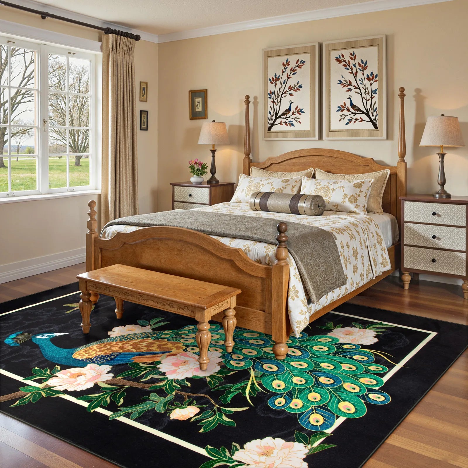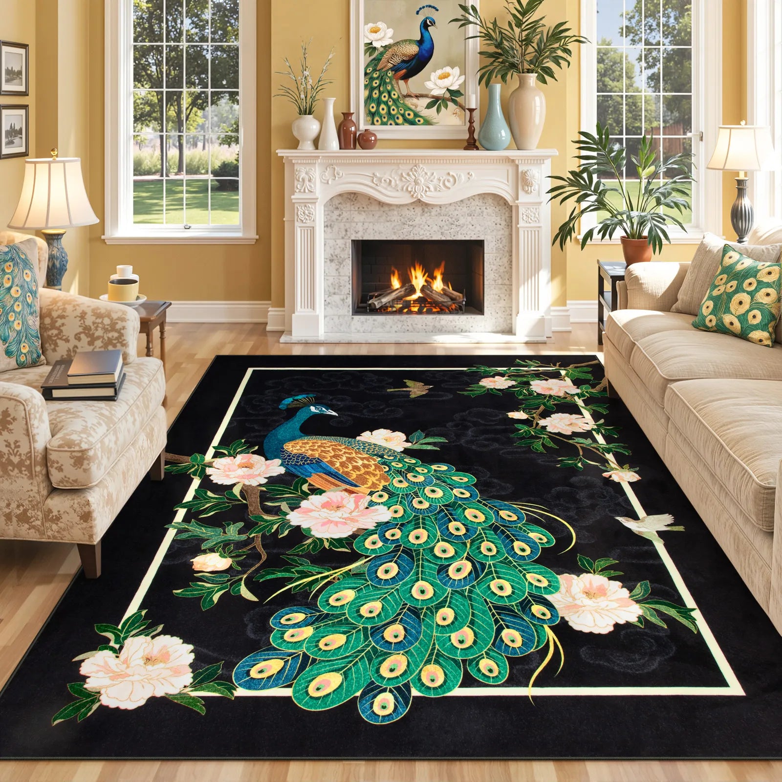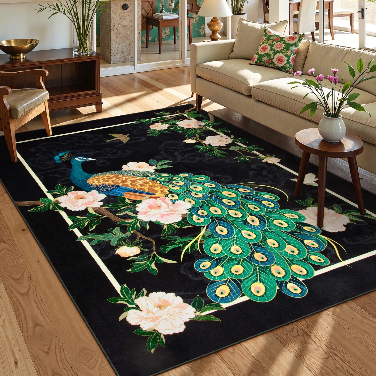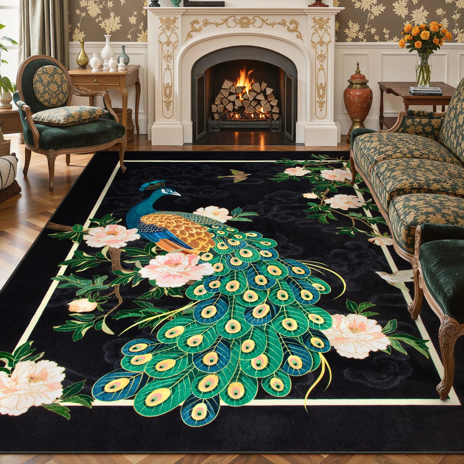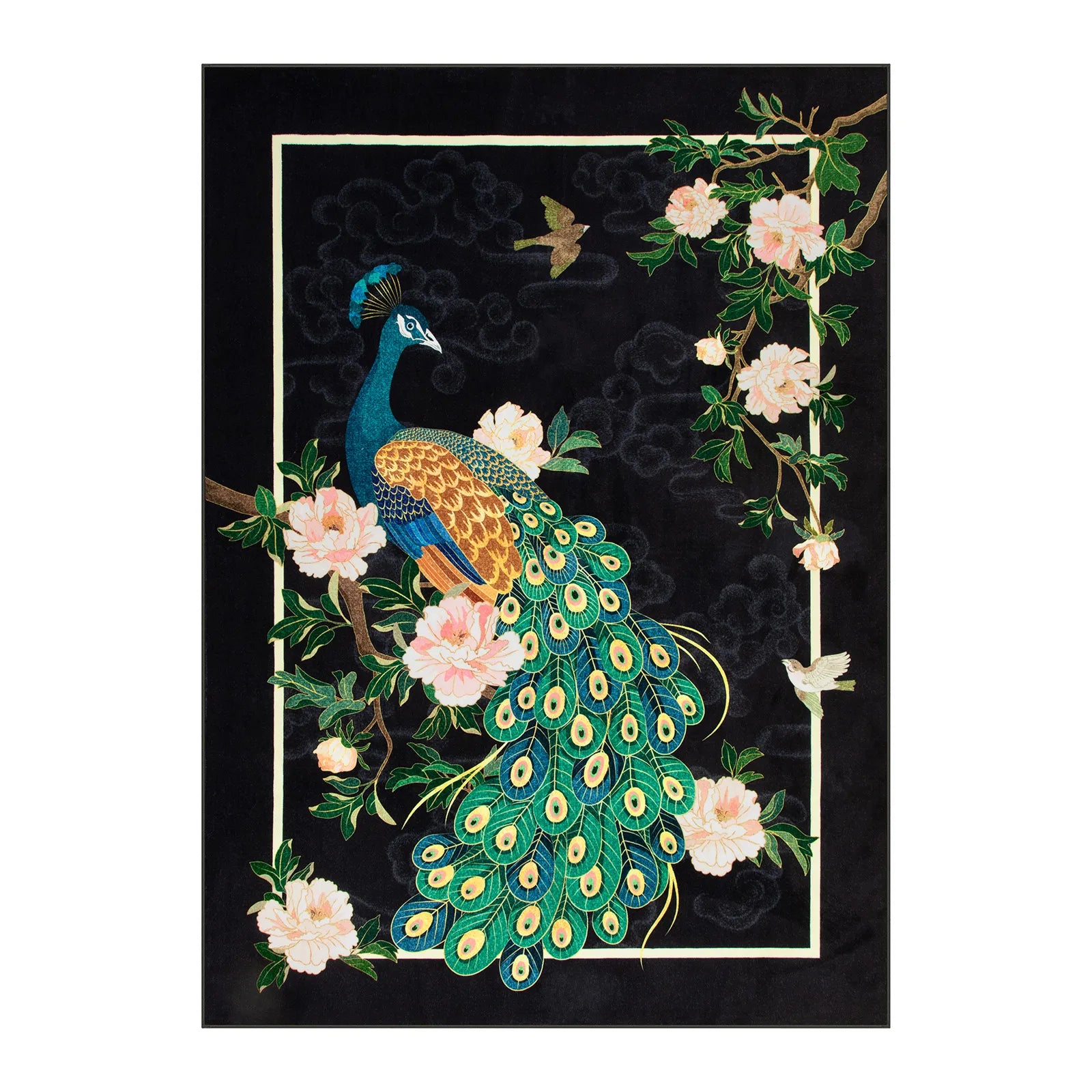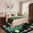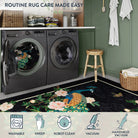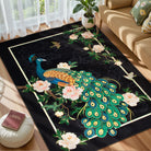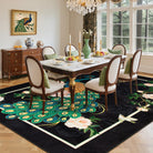 Eirene Washable Pastoral Peacock Garden Black Rug