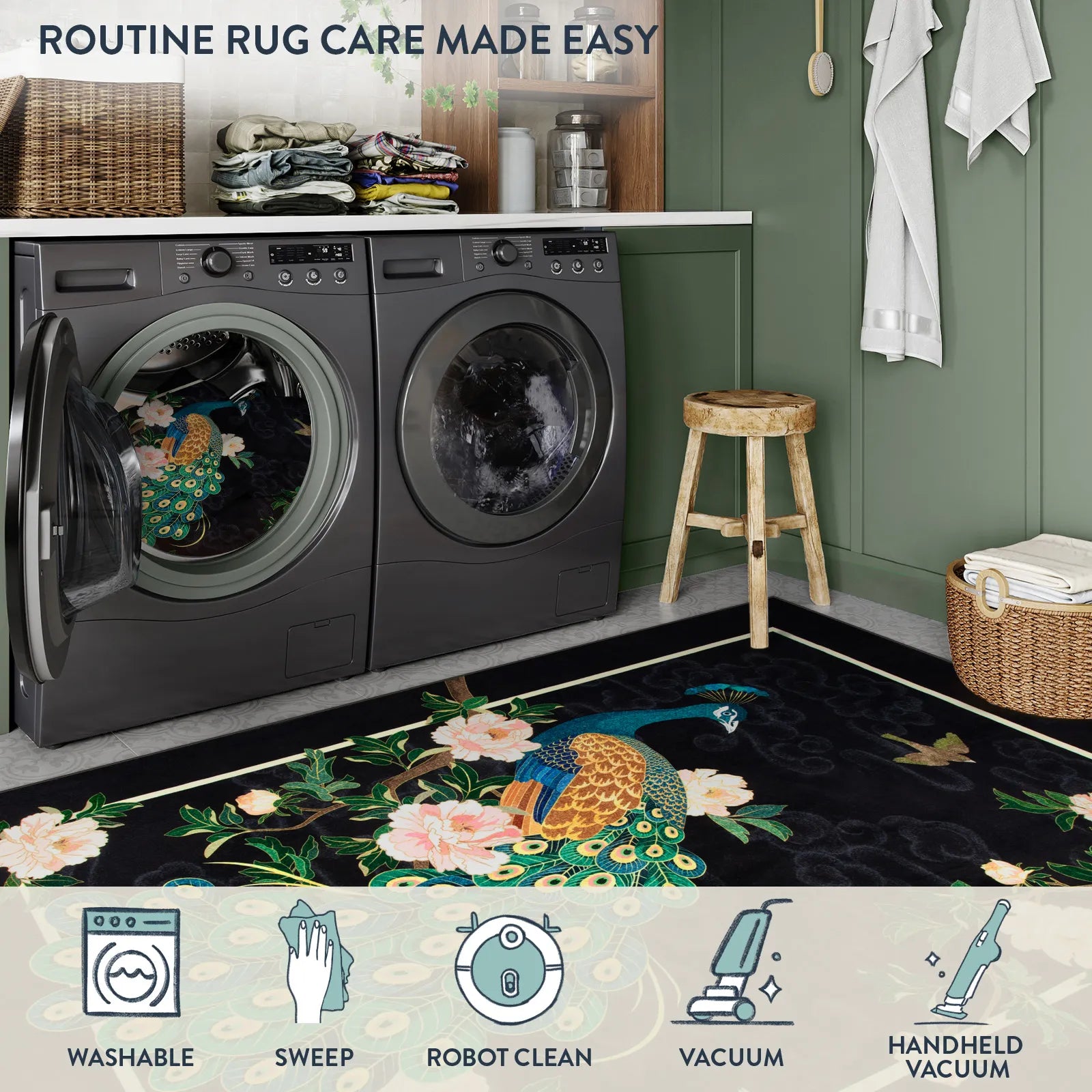 - Our washable rugs are designed to be compatible with most standard washing machines.