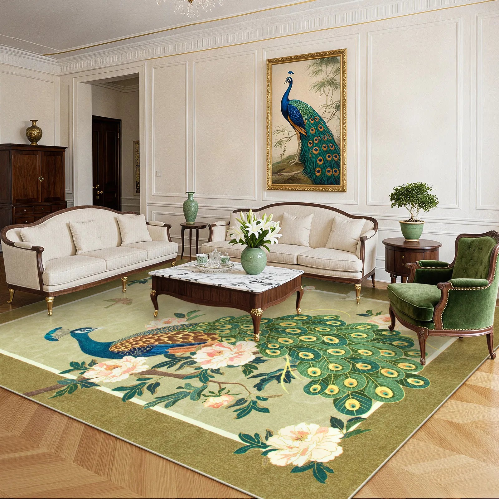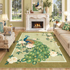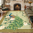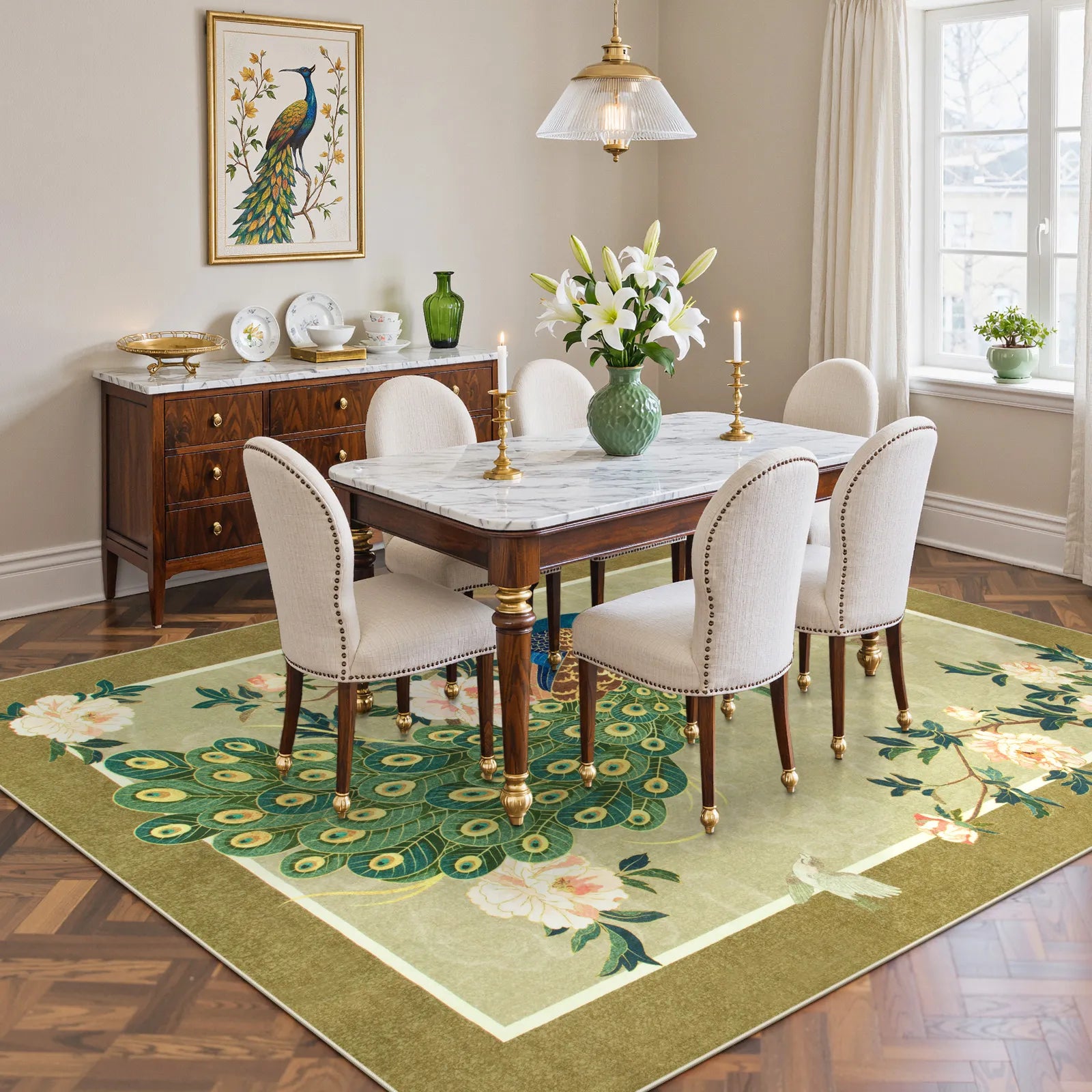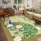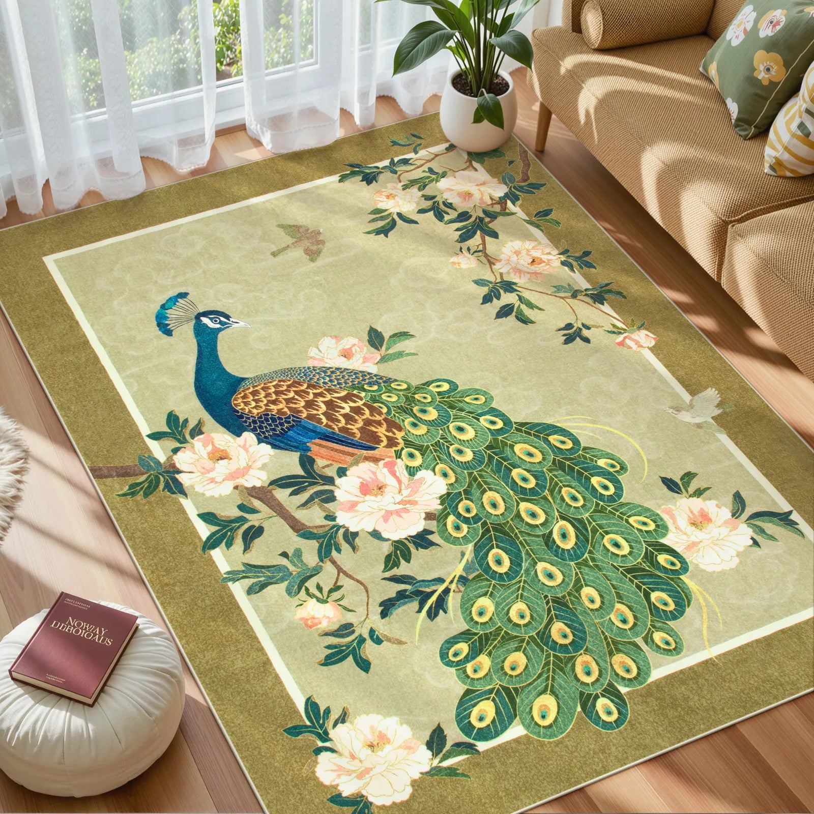 Eirene Washable Pastoral Peacock Garden Soft Olive Rug