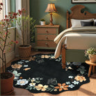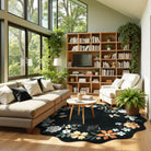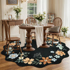 Flore Washable Boho Modern Parisian Floral Scalloped Black Rug