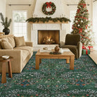 Giverny Washable Maximalism Vintage French Floral Dark Green Rug