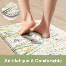 - Anti-fatigue Kitchen Mat: Ergonomic cushioned kitchen floor mats are constructed with 0.47inch (12mm) extra thick, long-lasting anti-fatigue memory foam center providing the ultimate comfort for your feet, back and legs.Feel comfortable like walking on a firm but soft cloud when you are cooking in kitchen or working at your standing desk.