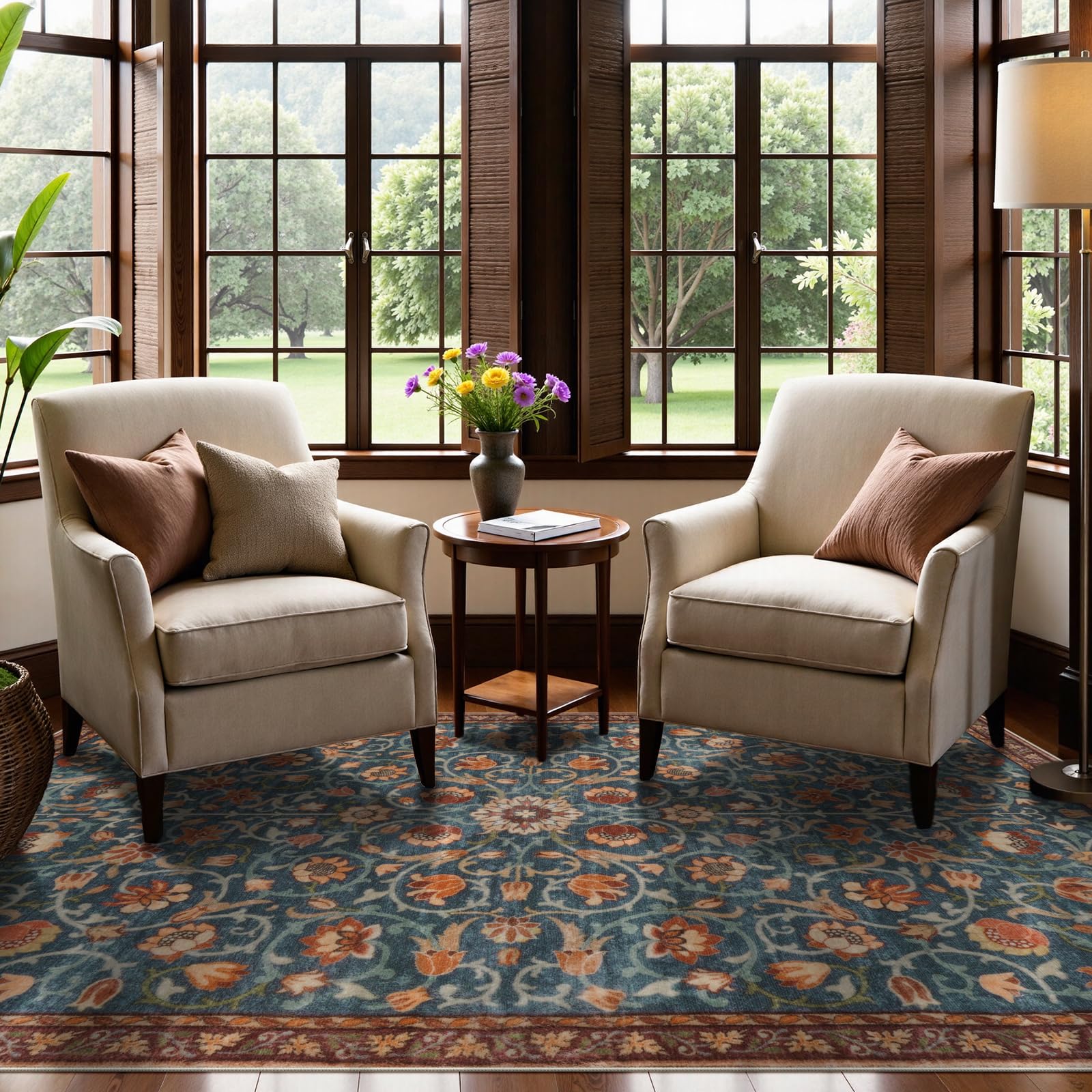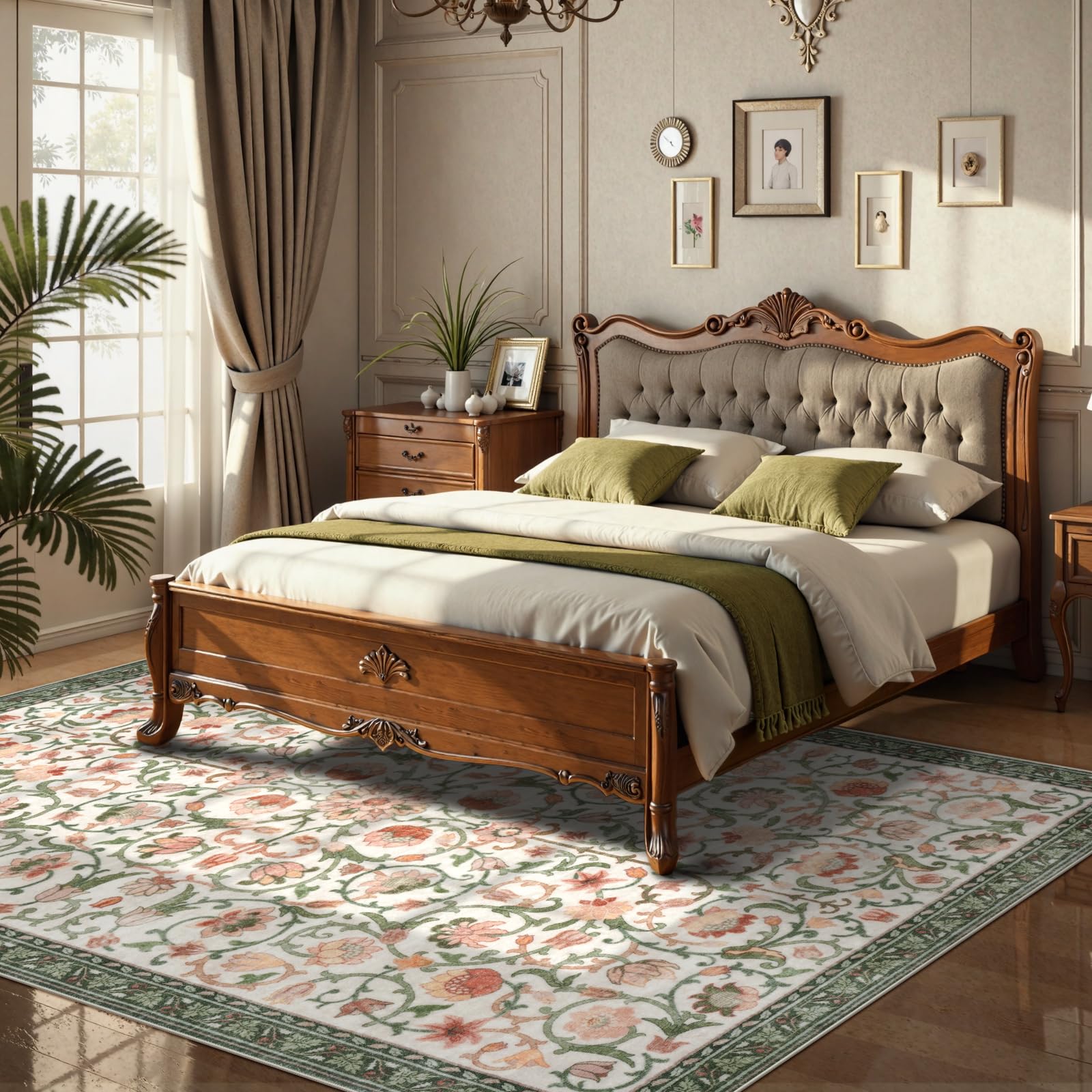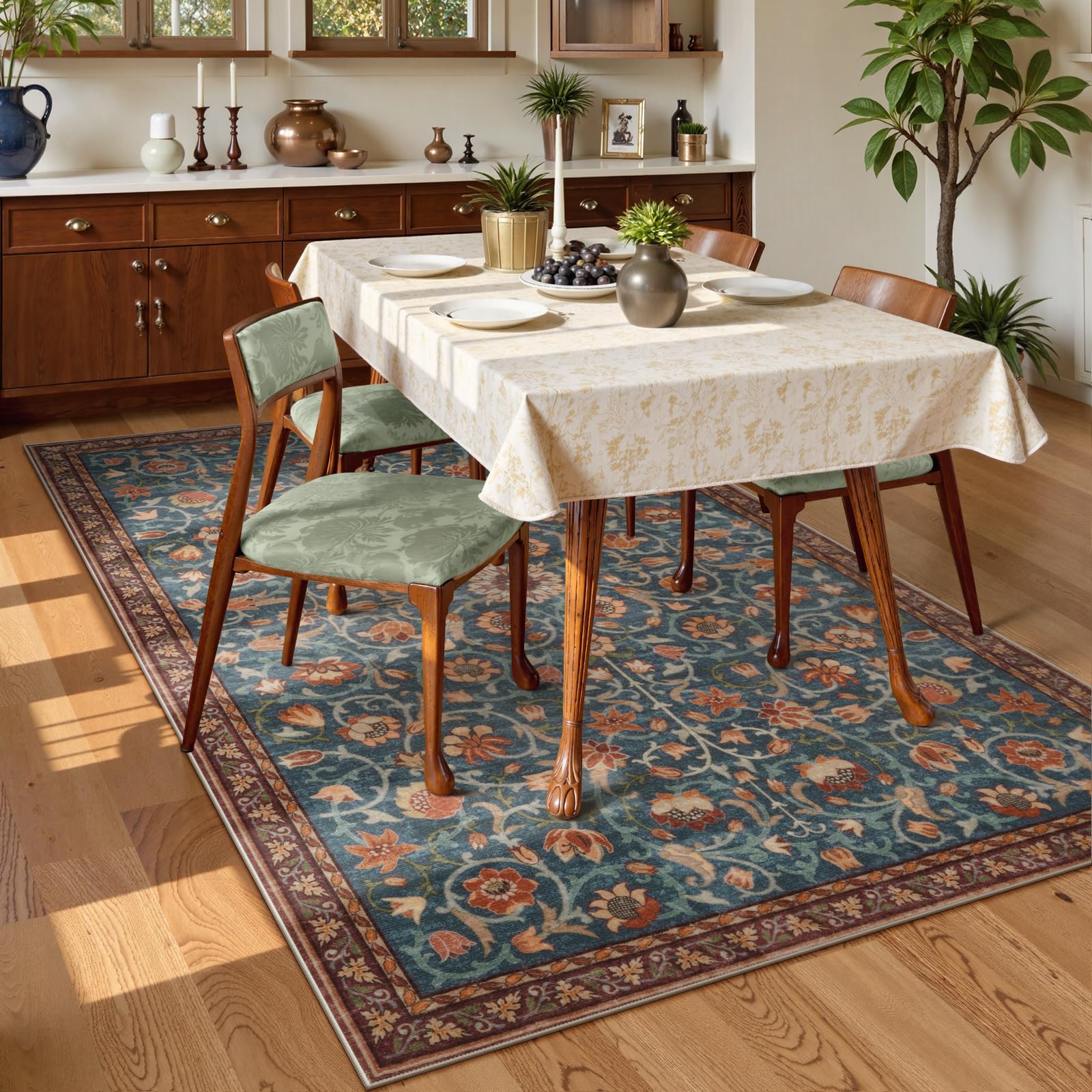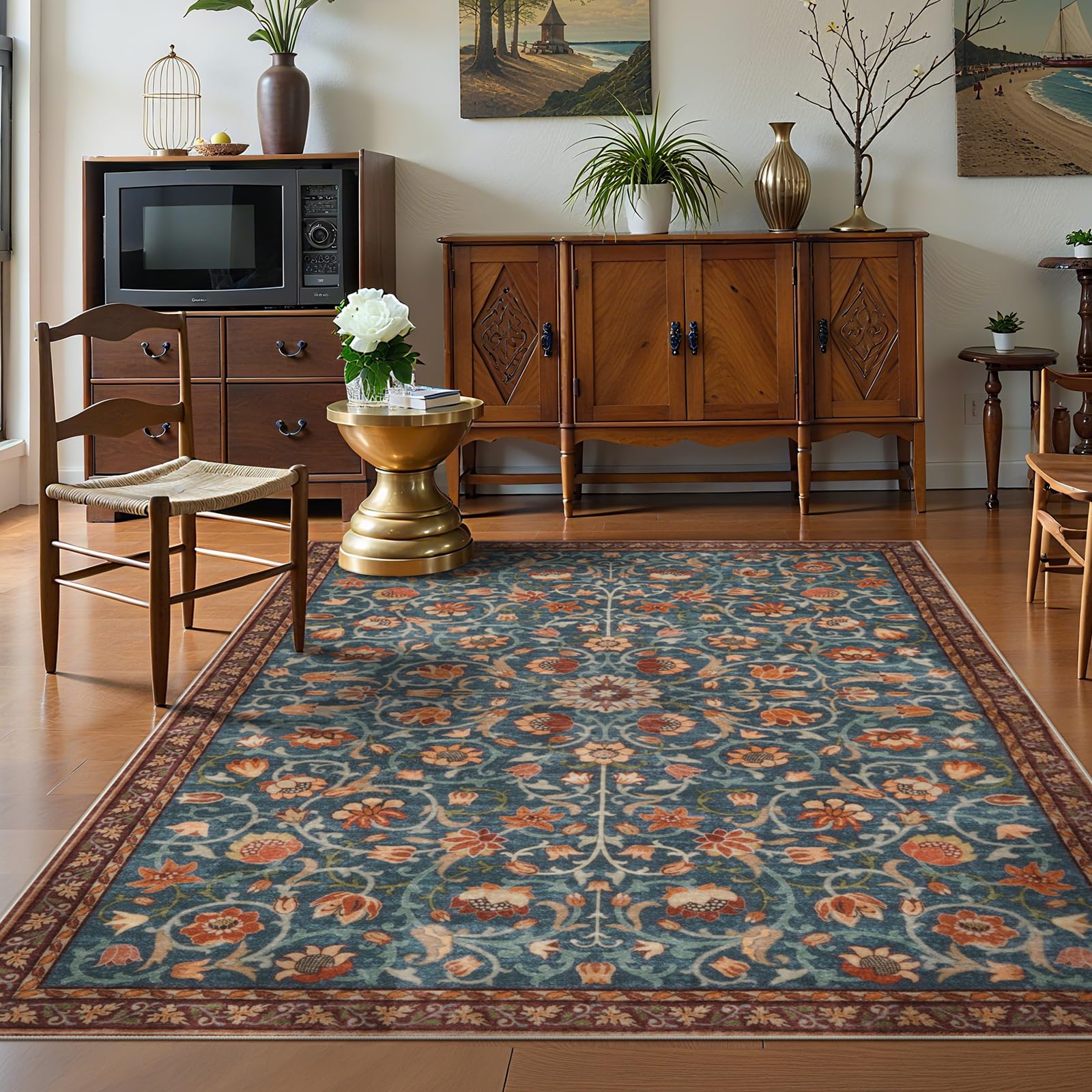 - Elegant Vintage Floral Rug: Designed with intricate bohemian-inspired floral patterns in rich, muted tones, this premium rug adds timeless sophistication to any space. Suitable for living room rugs, bedroom carpets, dining room rugs for under table or home office floor rugs