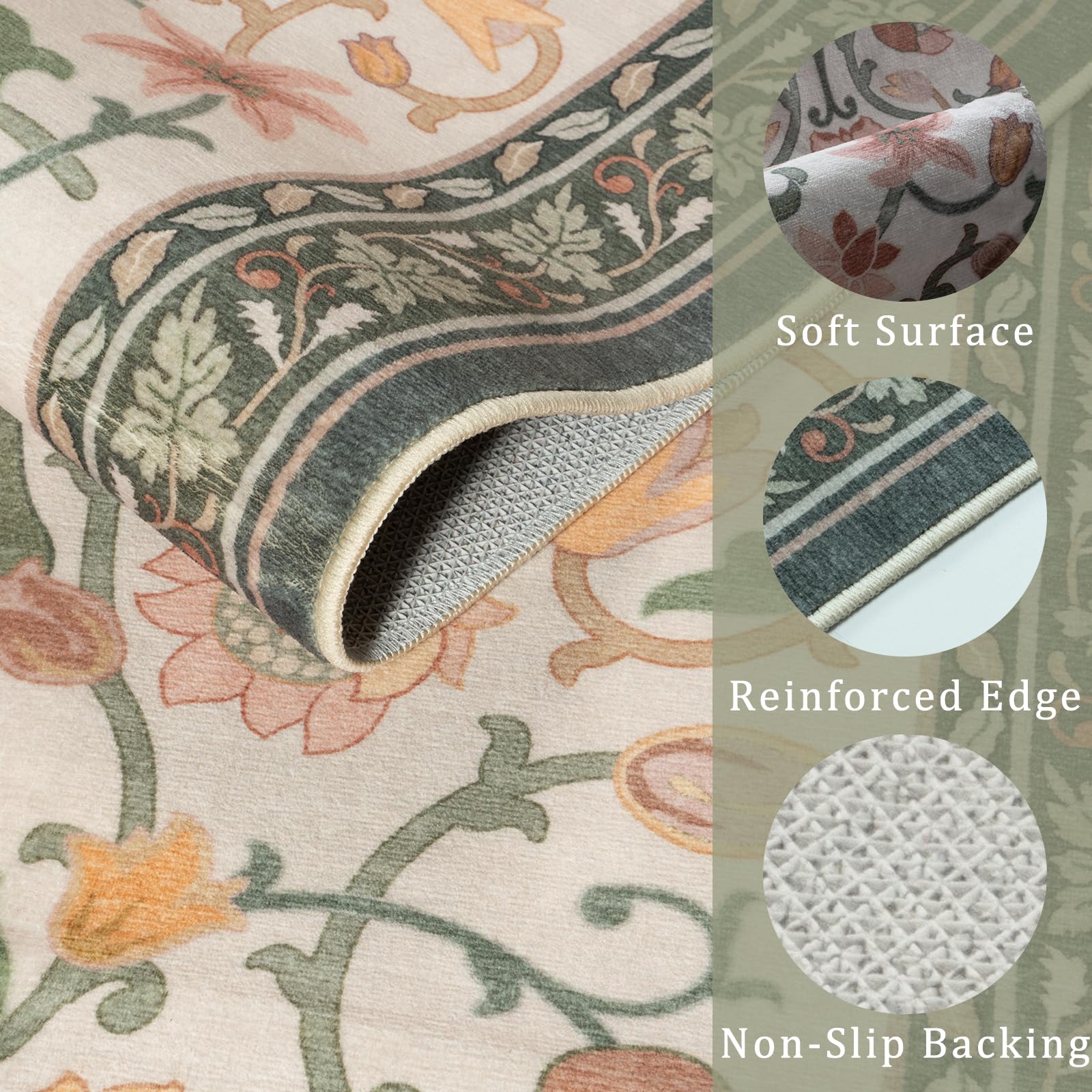 - Non-Slip Rug: The boho floral rug features a premium TPE anti-slip backing that keeps it securely in place on the floor, preventing slips, trips, and falls—ideal for homes with elderly, children, and pets