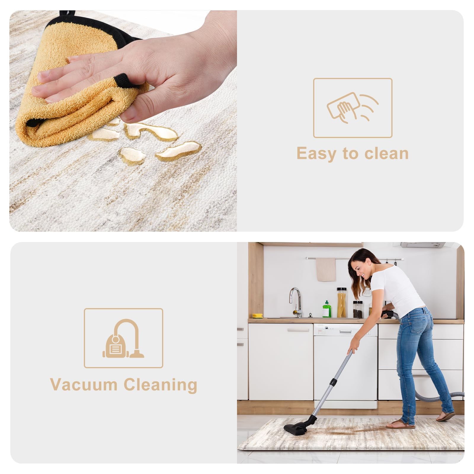 - Easy Clean & Waterproof: The cushioned kitchen carpets is stain resistant,waterproof and easily cleaned.Simply wipe the floor mat with a damp cloth or sponge or use a hand-held vacuum as needed,save your time and energy