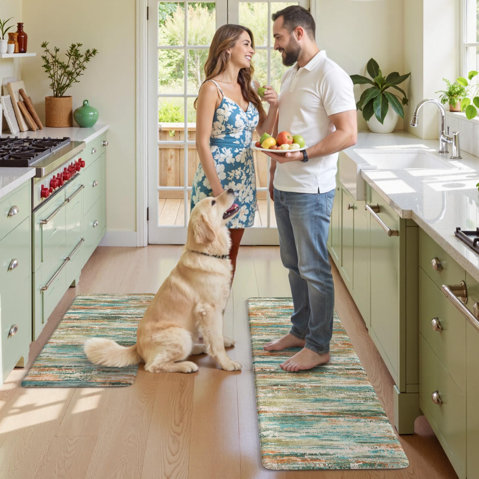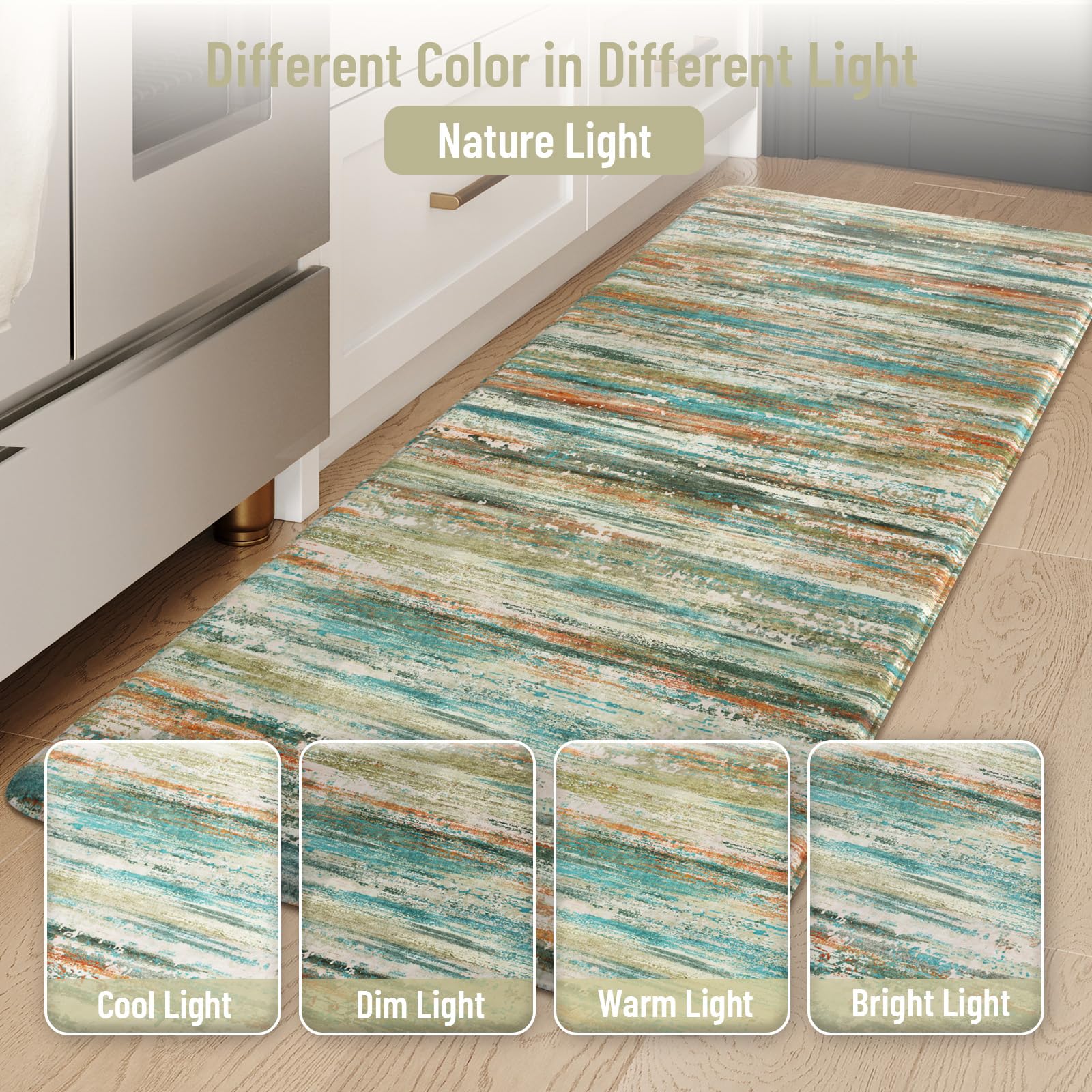 - Versatile: Abstract farmhouse style kitchen rug,easily to match your kitchen decor,bright your home.Soft thick foam provides ample support for standing in kitchen sink,laundry room, office,bathroom,dinning room,or any other high-traffic area