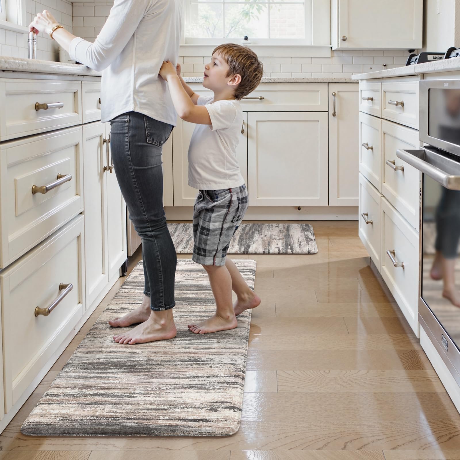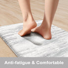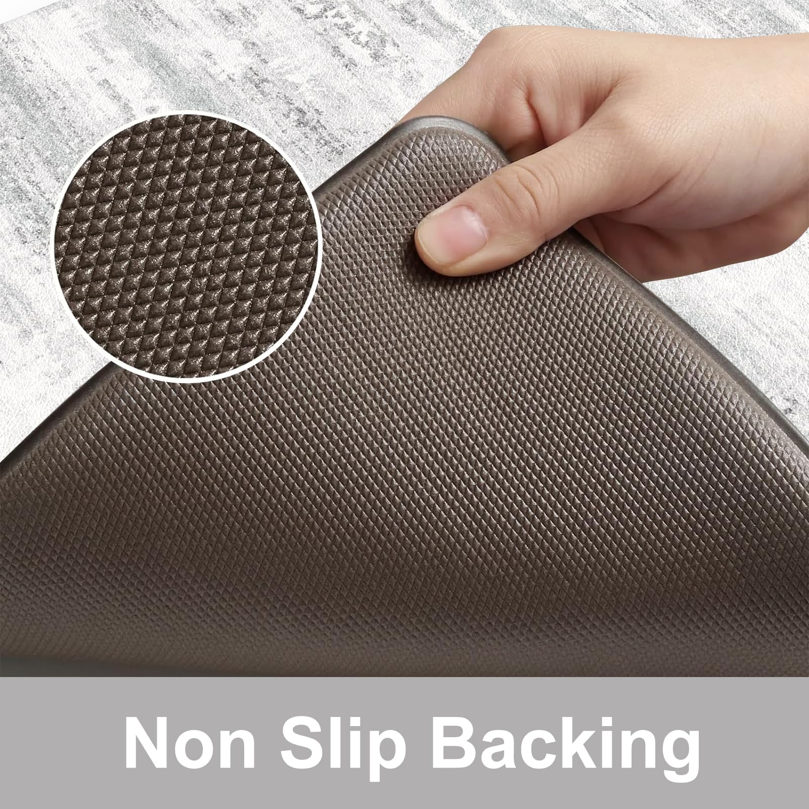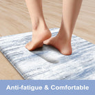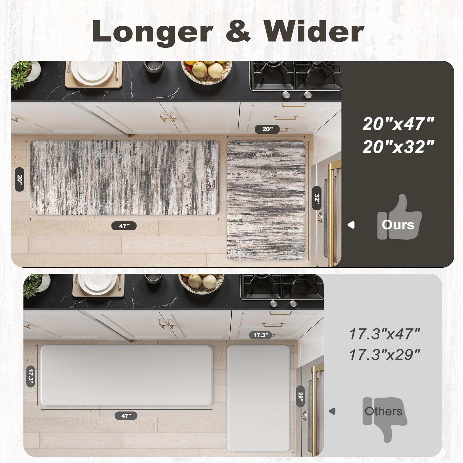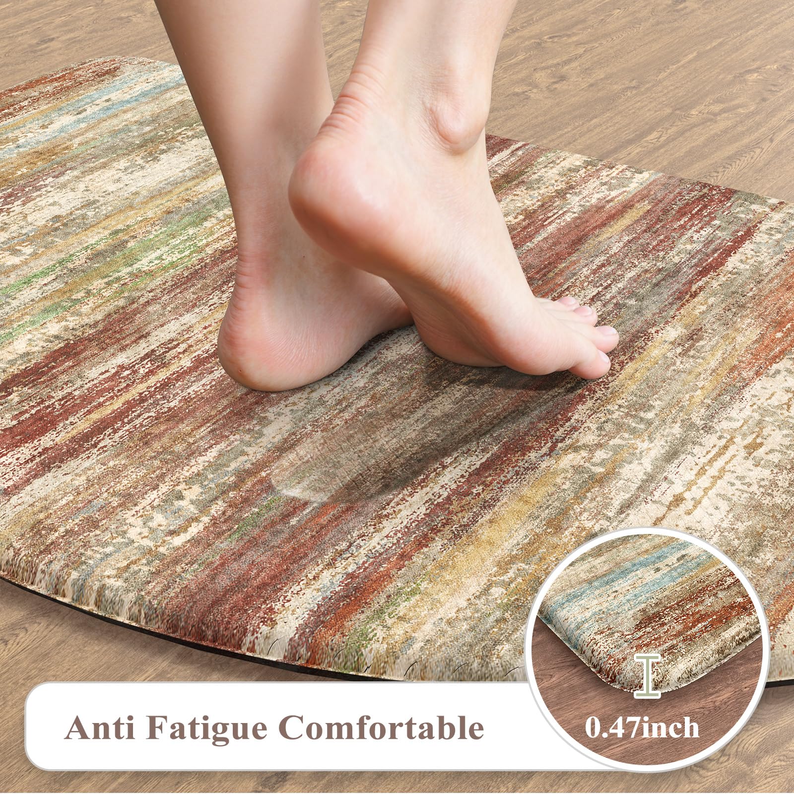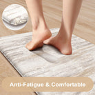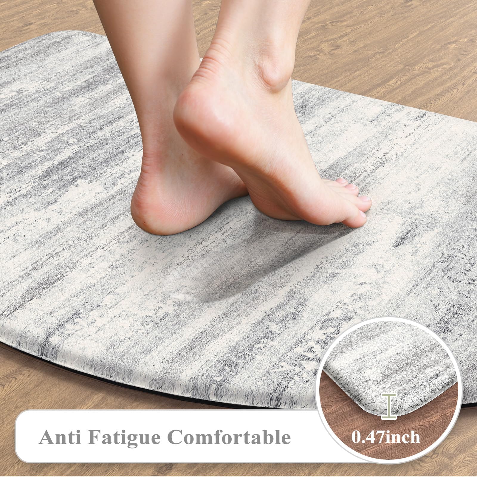 - Comfort Anti-fatigue Kitchen Mats: 0.47inch (12mm) extra thick anti fatigue kitchen floor mat are sure to provide cushion on your feet, knees, lower back, and joints for standing.Feel comfortable like walking on a firm but soft cloud when you are cooking in kitchen or working at your standing desk
