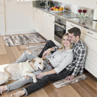 - Kitchen Rugs Set 2PC: The set contains 2 rectangular kitchen mats measure 17.3"x 47"+17.3"x 29".The comfort standing mat are made of premium PVC materials,to ensure that the mats will keep their shape, even with extended and long-term heavy duty use