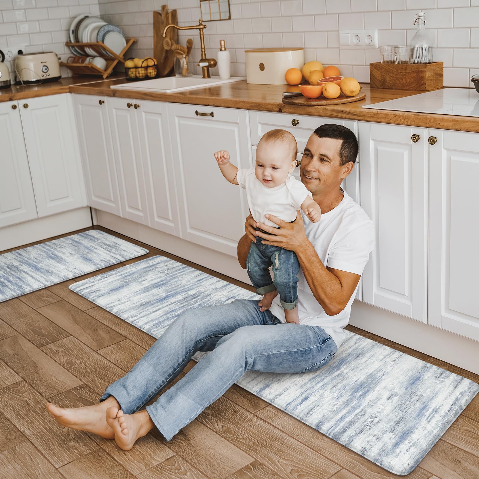 Lahomerugs Anti Fatigue Kitchen Mats 17"x47"+17"x29", Abstract Kitchen Rugs Sets of 2, Non Slip Kitchen Mats for Floor, Anti-fatigue floor mats, Cushioned Comfort Standing Mats for Sink, Laundry, Office, Desk Multi-Blue