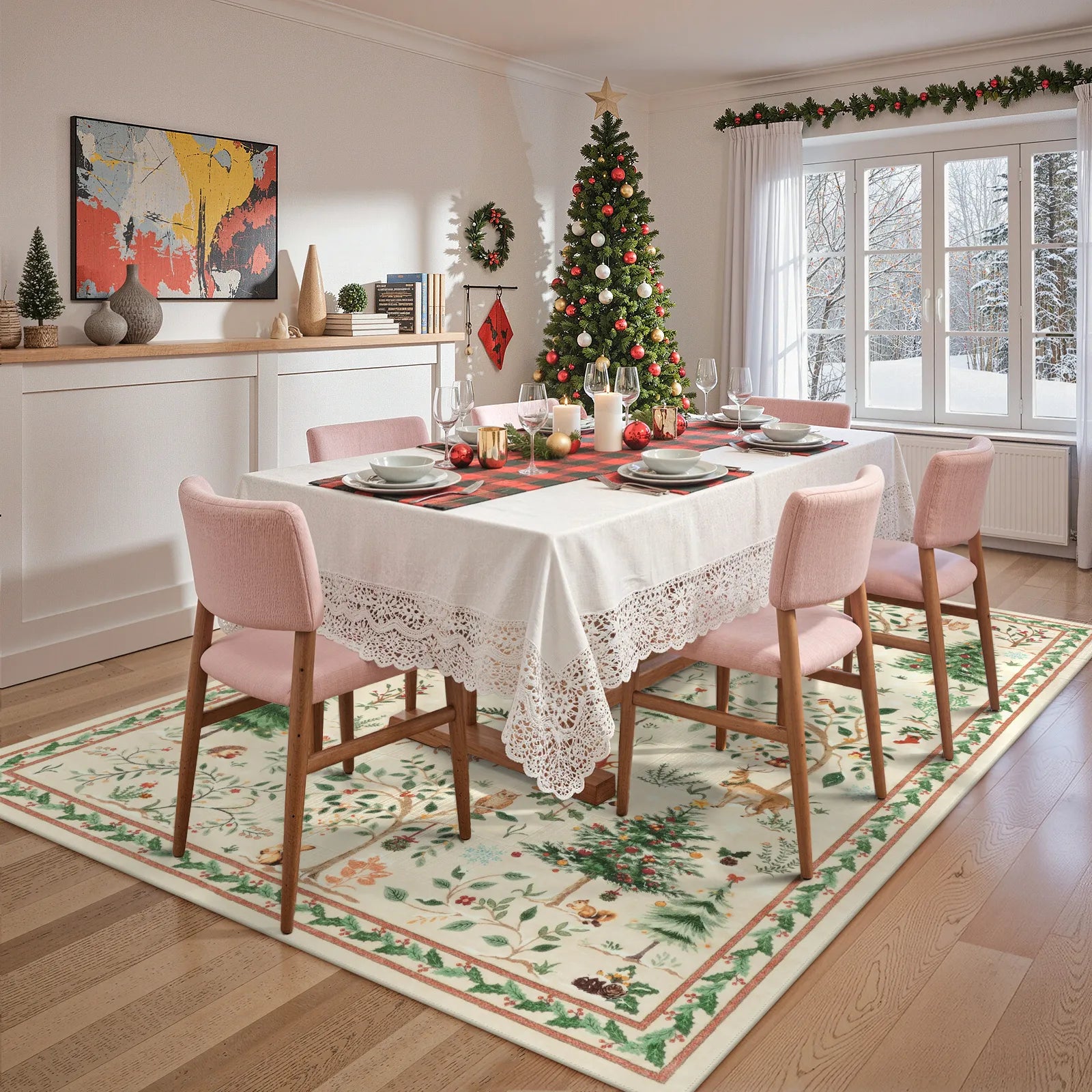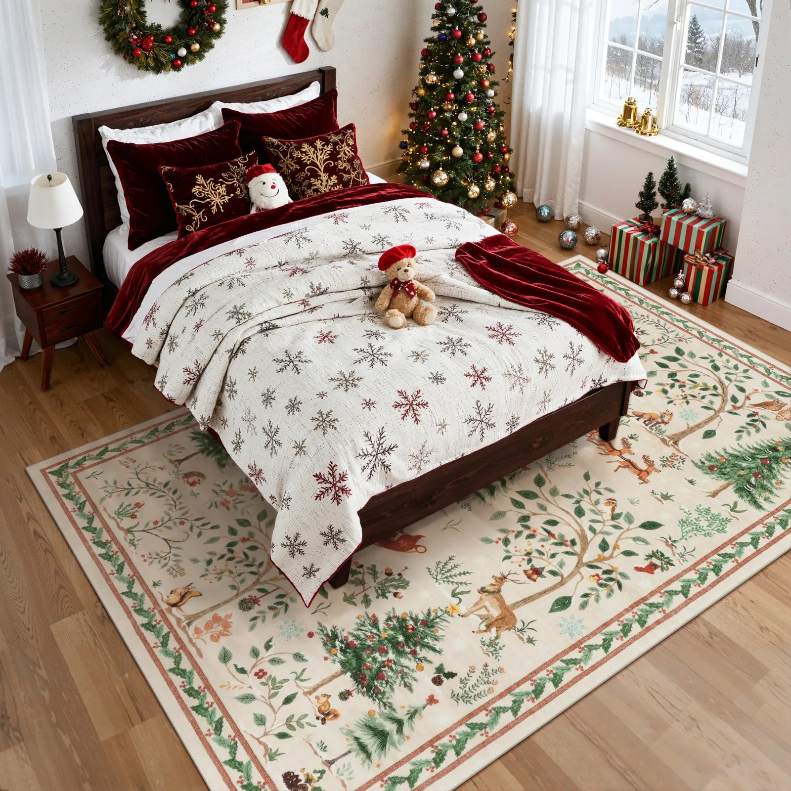 Lumiere Christmas Washable Classic Deer Woodland Beige Rug