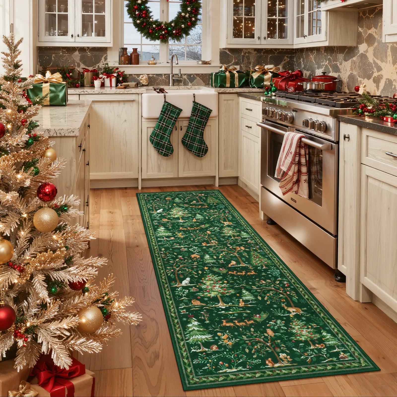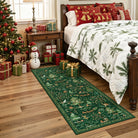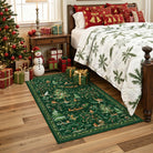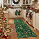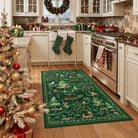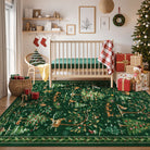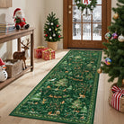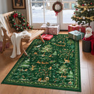 Lumiere Christmas Washable Classic Deer Woodland Green Rug