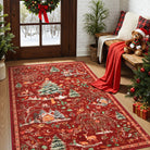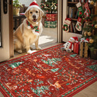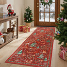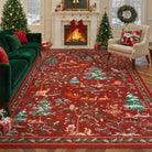 Lumiere Christmas Washable Classic Deer Woodland Red Rug