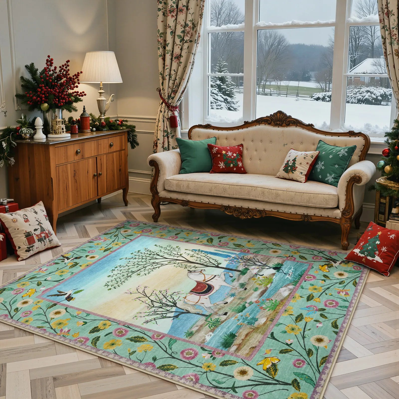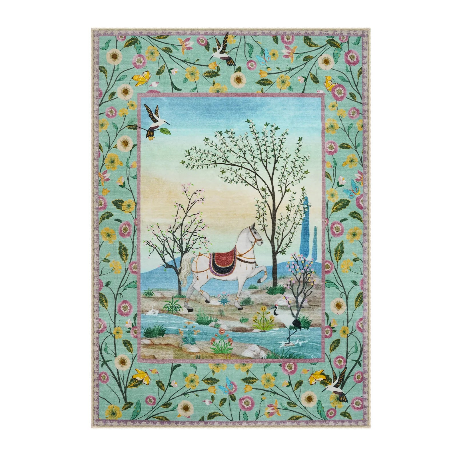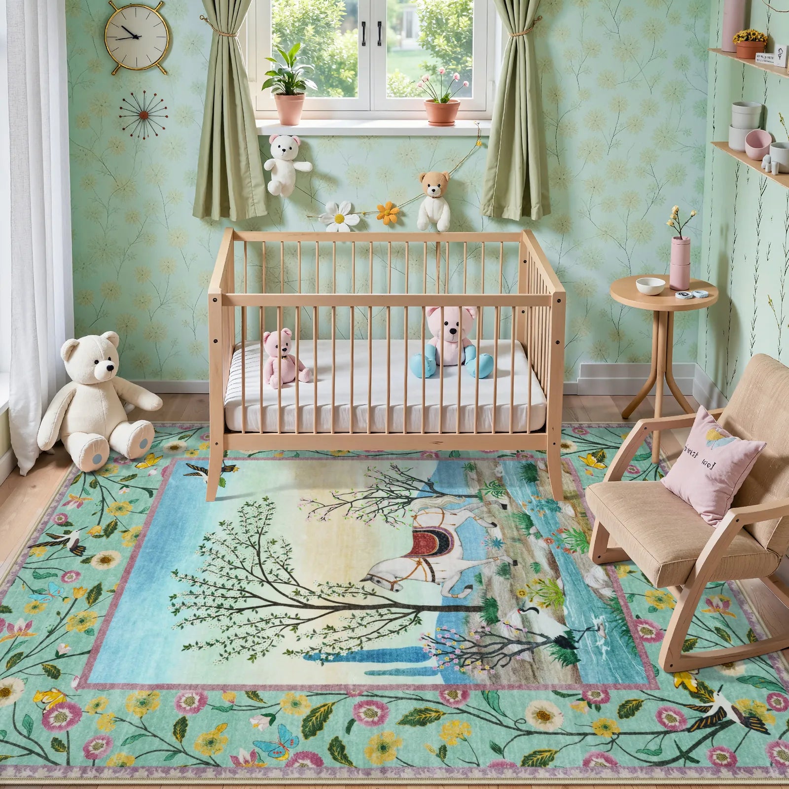 Meadow Washable Storybook Horse Pastoral Green Rug