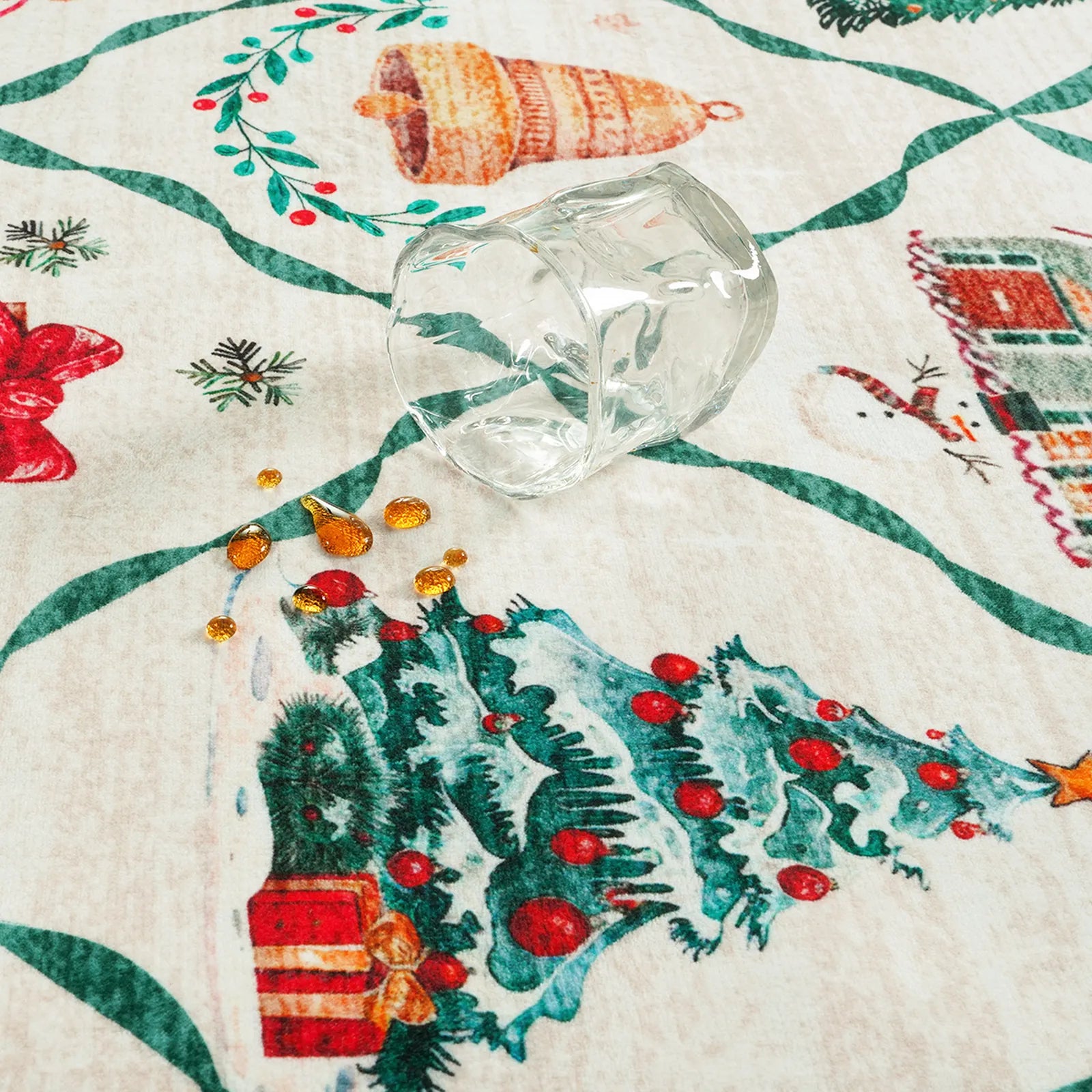Naya Christmas Washable Wreath Tree Plaid Ivory Rug