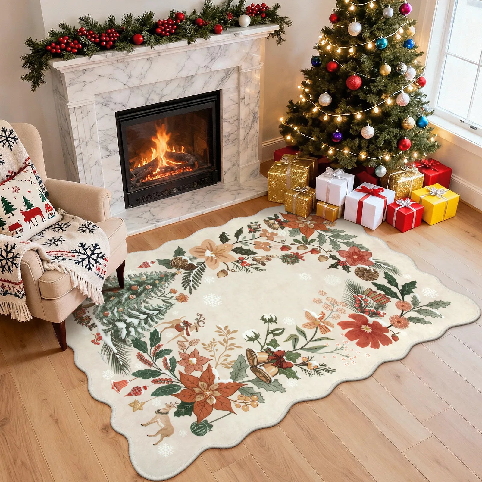 Nicolas Christmas Washable Floral Bell Beige Rug