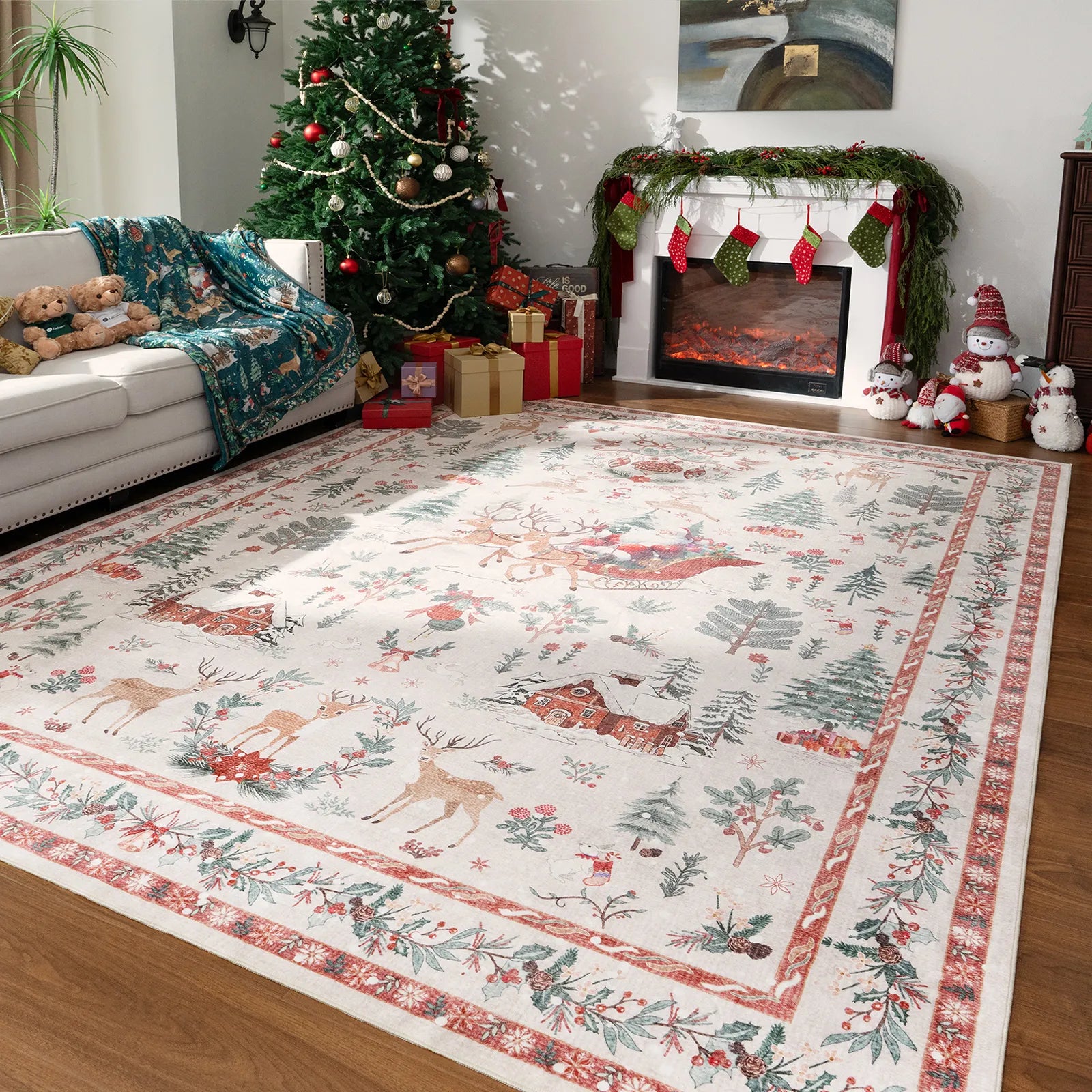 Olivier Christmas Washable Tree and Santa Beige Rug