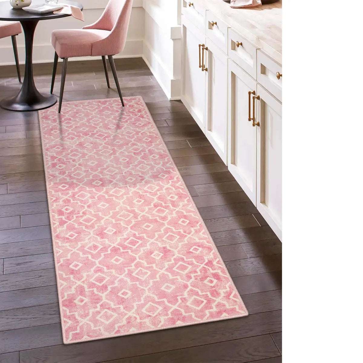 Rosette Washable Moroccan Trellis Pink Runner Rug