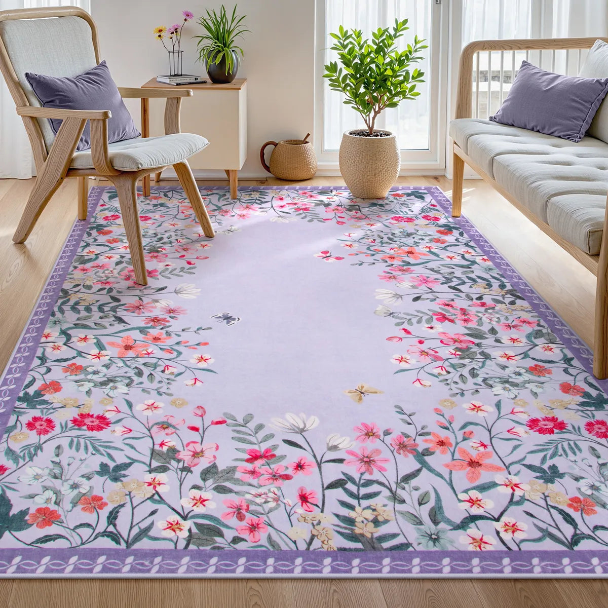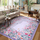 Solene Washable Modern Blooming Floral Garden Purple Rug