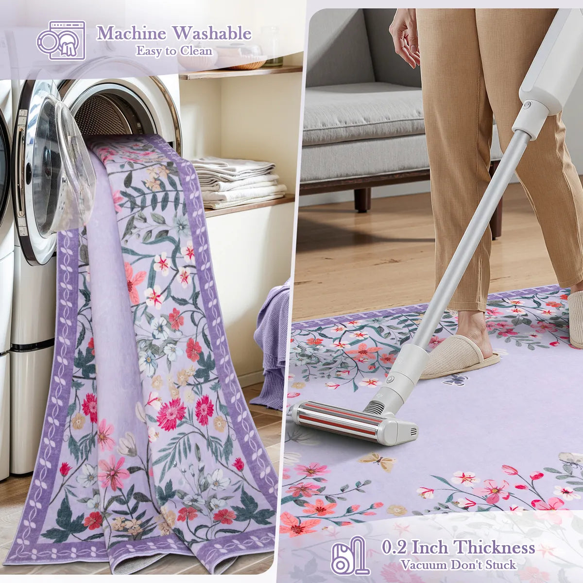 - Our washable rugs are designed to be compatible with most standard washing machines.