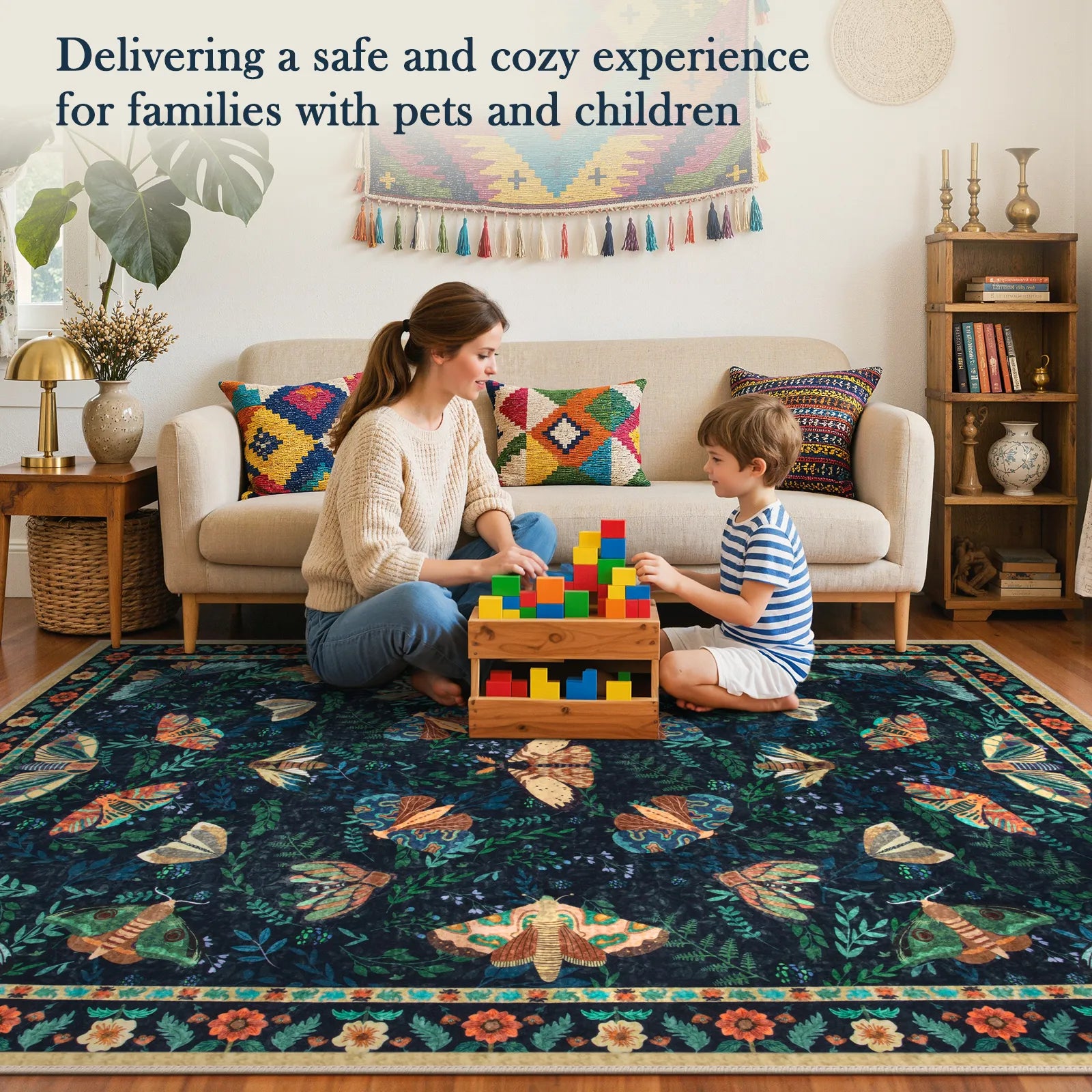 Yes—our rugs are made with safety and sustainability in mind. Lahome rugs are crafted using OEKO-TEX® certified materials, meaning they’re tested to be free from harmful substances and safe for homes with kids and pets.