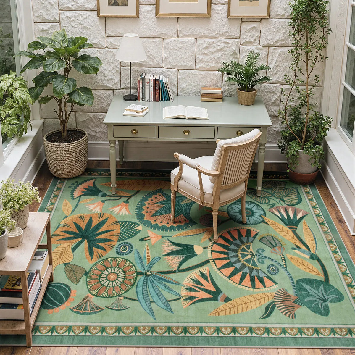 Zaya Washable Egyptian-Inspired Botanical Green Rug